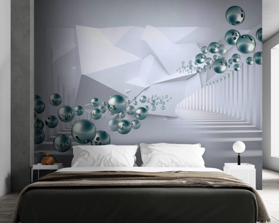Verwandeln Sie jeden Raum in einen traumhaften Zufluchtsort mit dieser Fototapete, die schwebende Kugeln in einem eleganten, abstrakten Flur zeigt. Stellen Sie sich vor: Sie betreten einen Raum, der wie eine Szene aus einem Science-Fiction-Film wirkt. Die Kugeln scheinen zu tanzen und laden zu Neugierde und Staunen ein. Es ist der perfekte Gesprächsanlass – Gäste könnten fragen, ob sie in eine andere Dimension eingetreten sind. Durch die Lichtreflexionen entsteht ein Gefühl der Tiefe, so dass die Wände lebendig wirken, fast so, als würden sie atmen. Diese Fototapete ist ideal für ein gemütliches Wohnzimmer oder ein schrulliges Büro und verleiht jedem den Hauch von Kreativität, nach dem sich jeder heimlich sehnt. Lassen Sie Ihrer Fantasie freien Lauf!