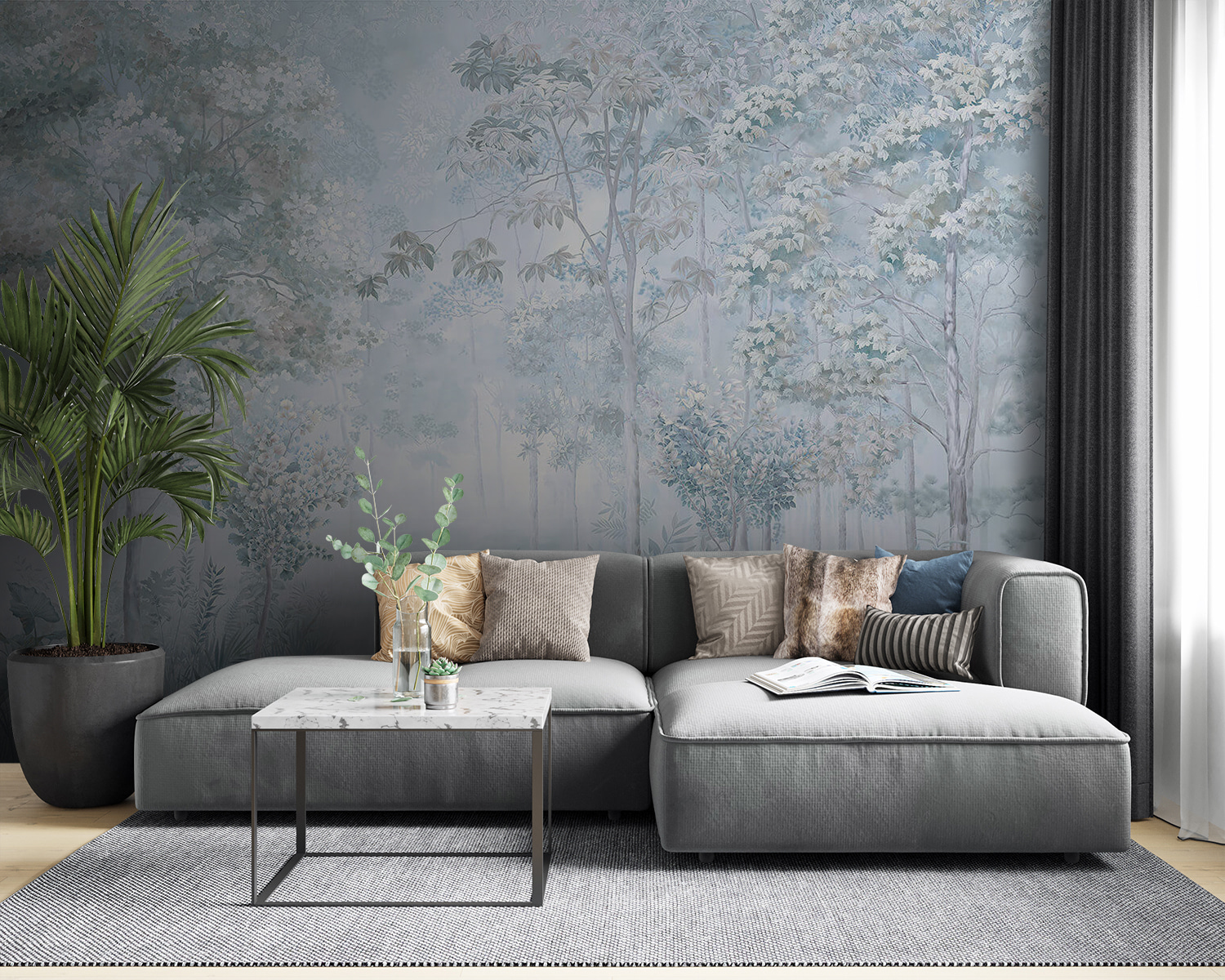 Lassen Sie sich mit diesem bezaubernden Wandbild mit Bäumen und Pflanzen in eine verträumte Welt entführen. Stellen Sie sich das sanfte Rascheln der Blätter und das leise Flüstern eines nebligen Waldes direkt in Ihrem Wohnzimmer vor. Es ist, als ob man sich ein Stück Natur ins Haus holt, ohne Ungeziefer und nasse Schuhe. Die gedämpften Farben schaffen eine beruhigende Atmosphäre, perfekt für gemütliche Abende oder entspannte Morgenstunden mit Kaffee. Es ist eine stille Erinnerung daran, langsamer zu werden und durchzuatmen, was jedem Raum ein friedlicheres Gefühl verleiht. Verwandeln Sie Ihre Wände mit dieser ruhigen Note und lassen Sie den Charme der Natur jeden Tag auf sich wirken.