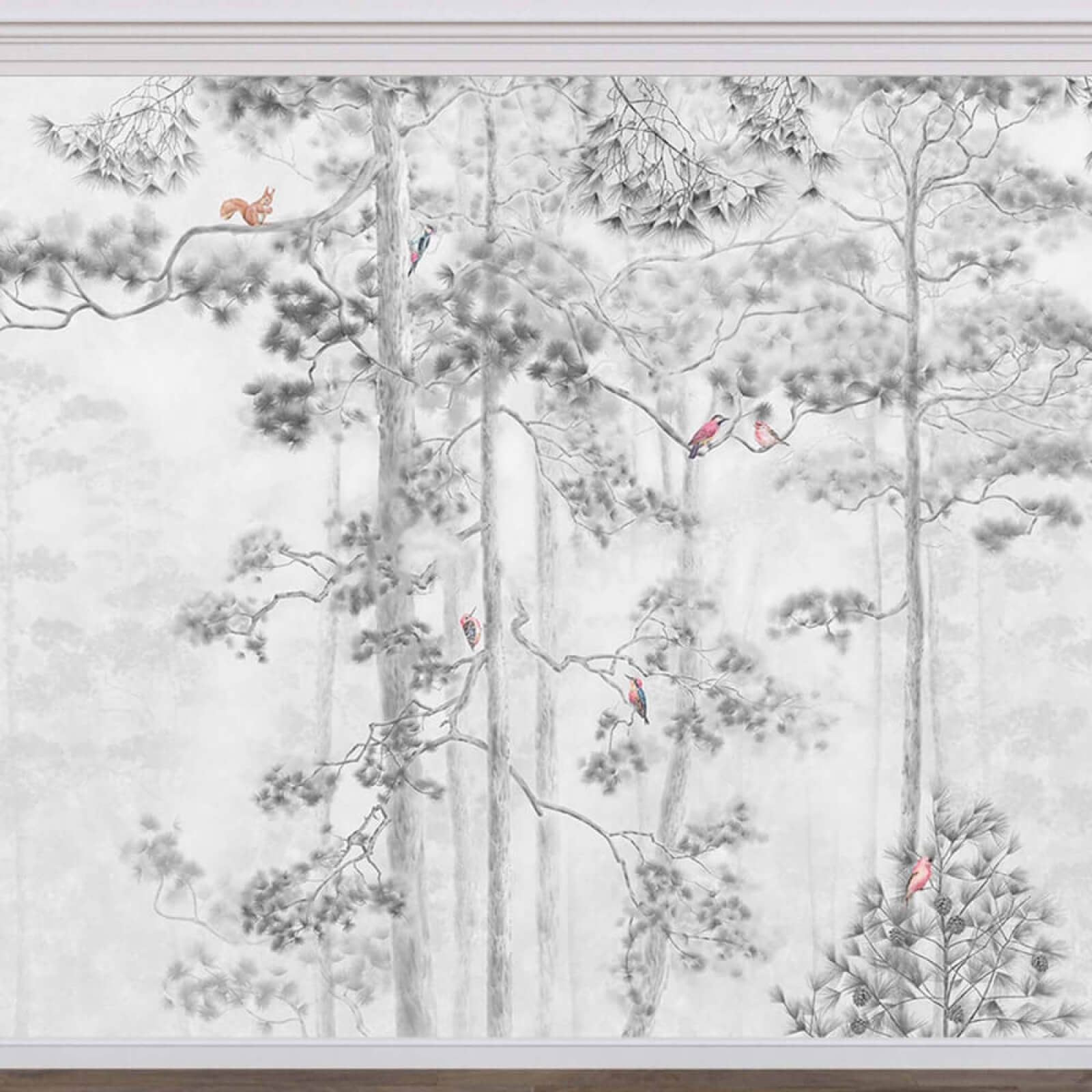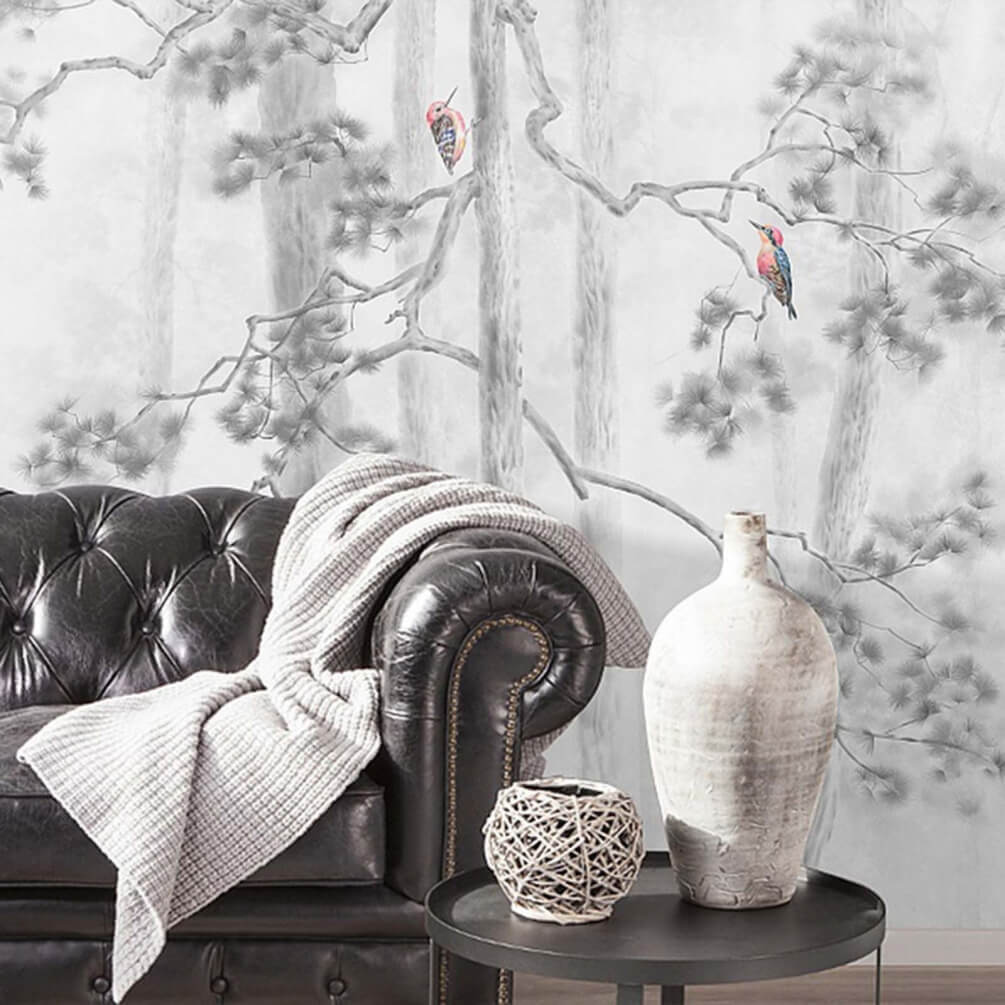 Dies ist nicht nur Wandkunst, sondern eine Flucht in eine nebelverhangene Waldoase direkt in Ihrem Zuhause. Ist es nicht erstaunlich, wie ein bisschen Natur Ihren Raum verwandeln kann? Verleihen Sie Ihren Wänden mit diesem schönen Wandbild einen Hauch von frischer Luft. Sie könnten sich in den Details verlieren – die winzigen Vögel haben eine eigene Persönlichkeit!
