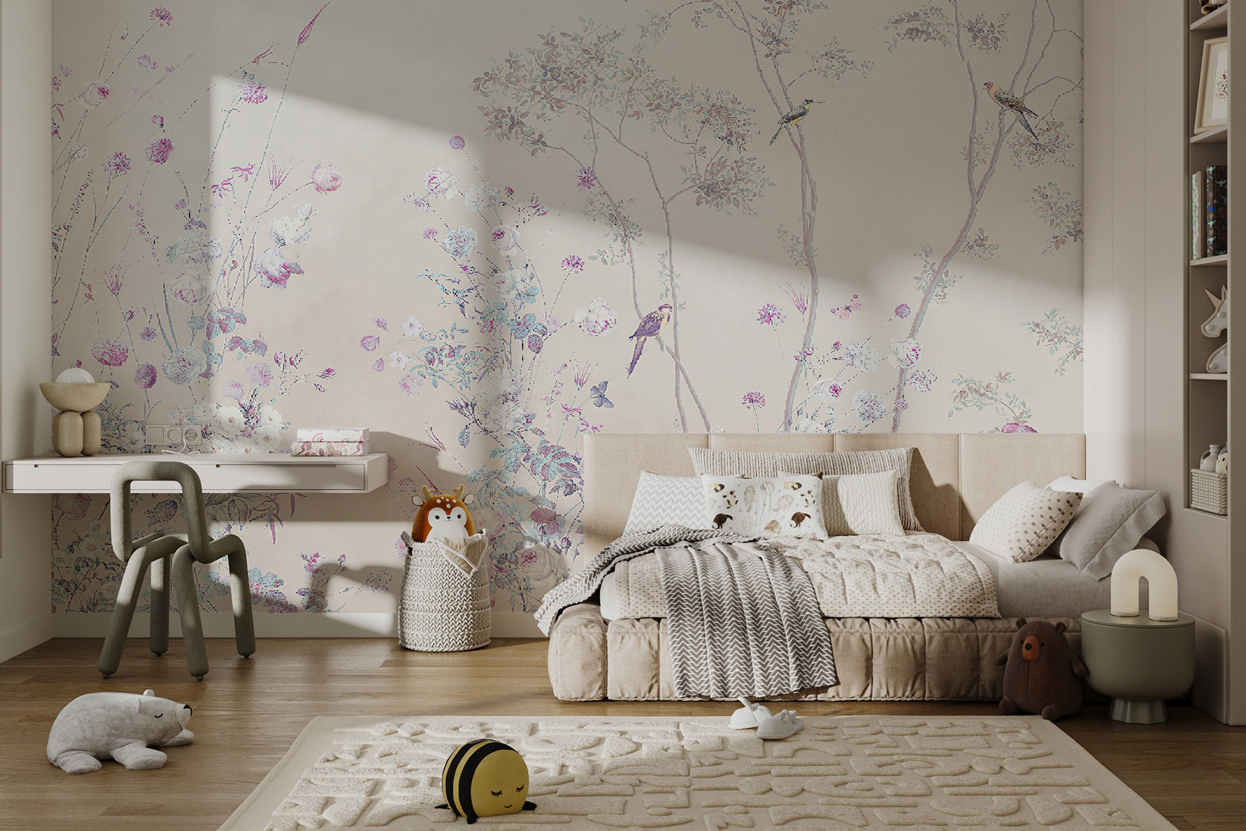 Diese Fototapete “Pastellblumen und Vögel in Harmonie” ist wie eine sanfte, verträumte Melodie für Ihre Wände. Stellen Sie sich vor, Sie würden Ihren Raum mit Blüten und zarten Vögeln in beruhigenden Pastelltönen füllen. Es ist perfekt für alle, die die Schönheit der Natur lieben und sich einen Hauch von Natur ins Haus holen wollen, ohne sich mit Schmutz oder Ungeziefer herumschlagen zu müssen. Es könnte genau das Richtige sein, um einen langweiligen Raum in einen süßen kleinen Zufluchtsort zu verwandeln. Die sanften Farben und die beruhigende Szene lassen einen sich wie in einem verwunschenen Garten fühlen. Perfekt für ein Schlafzimmer oder eine gemütliche Leseecke, in der man den Nachmittag verträumt verbringen kann. Und wer würde nicht gerne jeden Morgen mit einem Blumenfeld und der sanften Gesellschaft von kleinen Vögeln aufwachen?