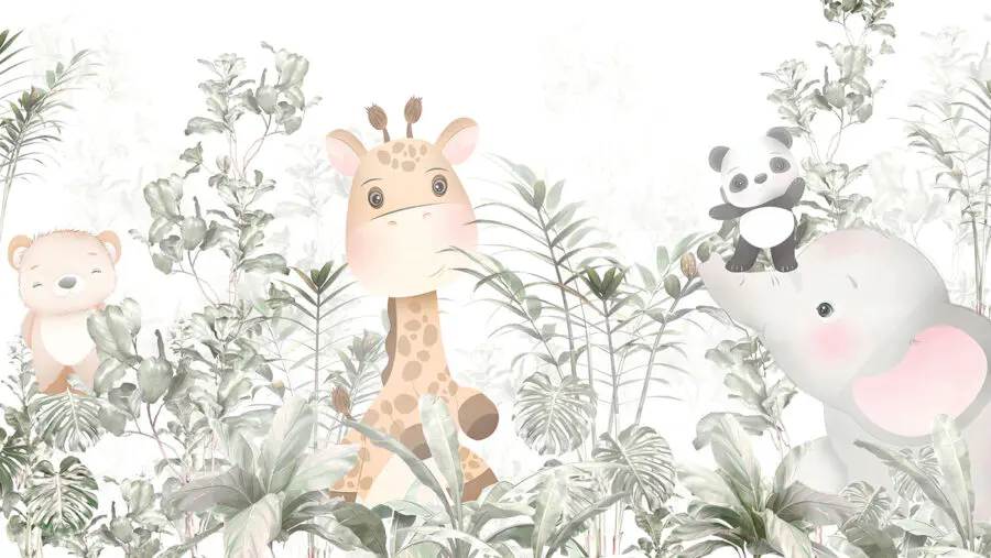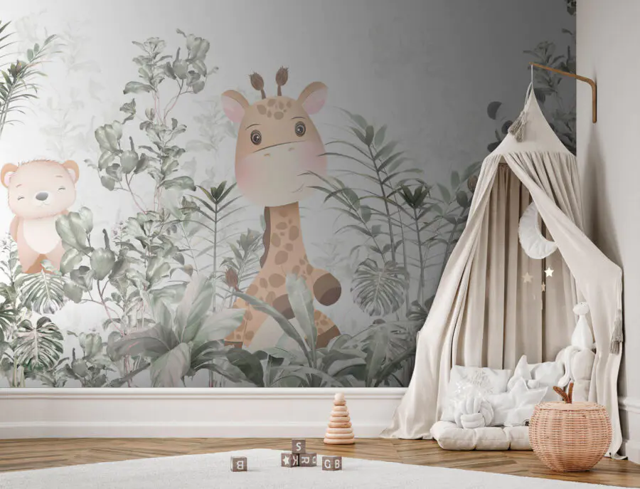 Verwandeln Sie den Raum eines Kindes in ein skurriles Dschungelabenteuer mit diesem entzückenden Wandbild, das eine charmante Giraffe, einen verspielten Panda und einen süßen kleinen Bären zeigt. Stellen Sie sich vor, Sie betreten das Zimmer und spüren sofort die Wärme einer lebendigen, natürlichen Welt, in der Kreativität blüht und Träume aufsteigen. Die sanften Farben und die bezaubernden Tiere regen die Fantasie an und machen die Märchenstunde zu einem noch magischeren Erlebnis. Perfekt, um Kichern und Gemütlichkeit auszulösen, ist es, als hätte man ein kleines Stückchen Wildnis direkt an den Wänden. Wer würde nicht gerne von dieser bunten Truppe umgeben aufwachen? Der Dschungel ist nicht nur für die Tiere da – er ist auch für die Kleinen da!