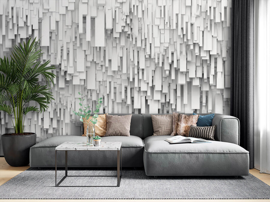 Verwandeln Sie Ihren Raum mit dieser auffälligen Wandtapete, die mit einer wunderschönen Anordnung weißer rechteckiger Formen besticht. Es ist, als würde ein kleines Stück moderner Kunst direkt auf Ihre Wand gespritzt! Stellen Sie sich vor, Sie betreten einen Raum, in dem die Wände Geschichten von zeitgenössischer Eleganz erzählen. Das Spiel von Licht und Schatten schafft eine beruhigende Atmosphäre, perfekt für gemütliche Abende oder lebhafte Zusammenkünfte. Es ist ein Gewirr aus geometrischem Charme, das so einladend wirkt, dass man sich einfach eine Tasse Kaffee und ein gemütliches Gespräch wünscht. Perfekt für alle, die das Einzigartige schätzen und sich eine Einrichtung mit ein wenig Persönlichkeit wünschen!