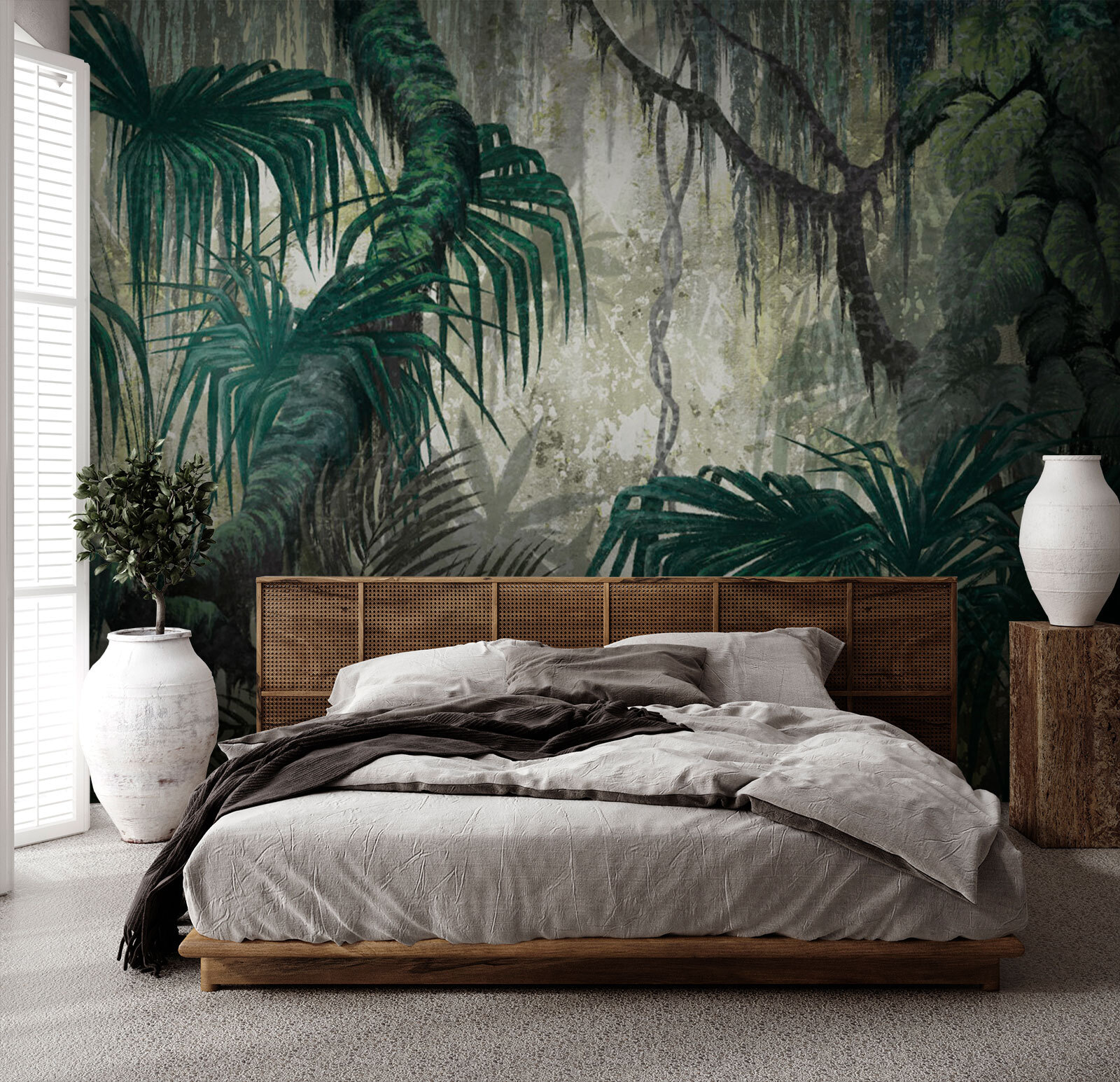 Die satten Grüntöne und die filigranen Details verbreiten eine gemütliche Atmosphäre, in der man fast das Rascheln der Blätter und ferne Vogelstimmen hören kann. Freunde kommen zu Besuch? Sie werden begeistert sein! Vielleicht fragen Sie sich sogar, ob Tarzan selbst auf einen Besuch vorbeischauen wird. Hervorragend geeignet für Wohnzimmer, Schlafzimmer oder sogar ein Büro – überall dort, wo ein Hauch von Naturpracht gewünscht wird. Eine schnelle Lösung für das Fernweh, ohne das Haus zu verlassen. Tauchen Sie ein in diese blattreiche Flucht!