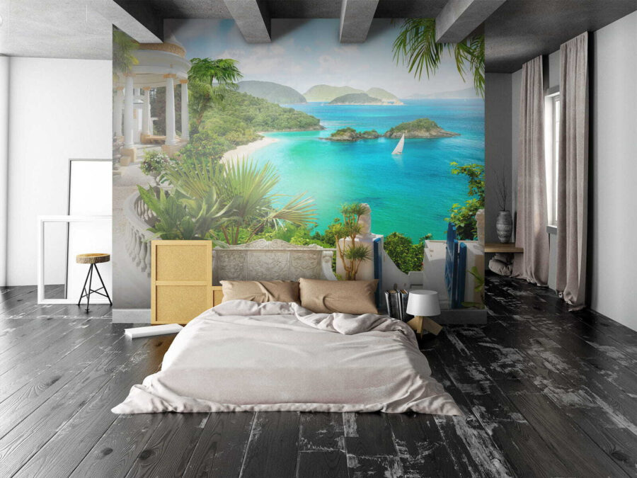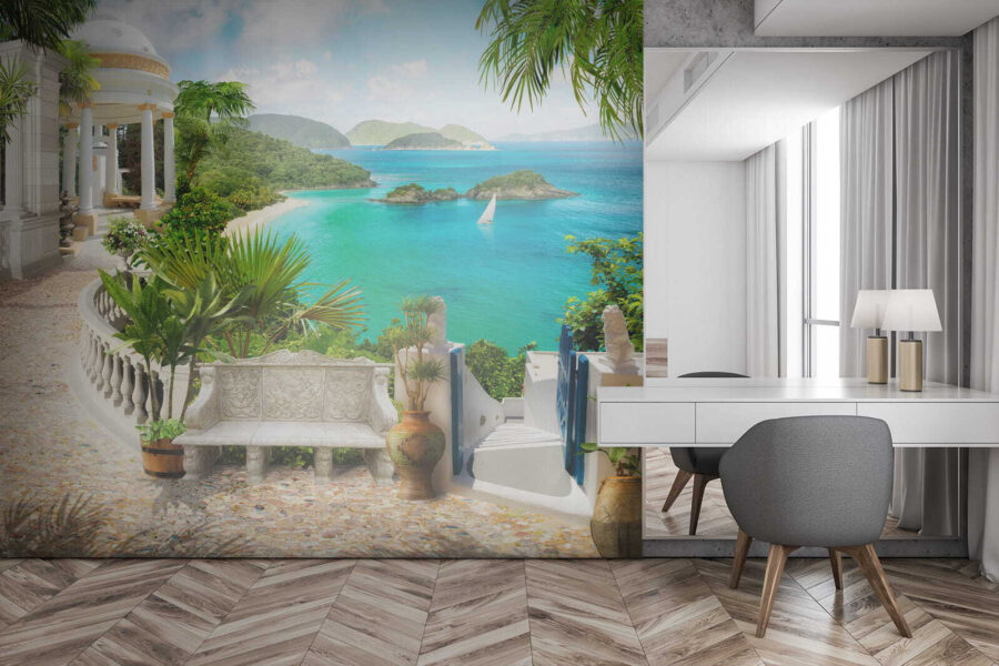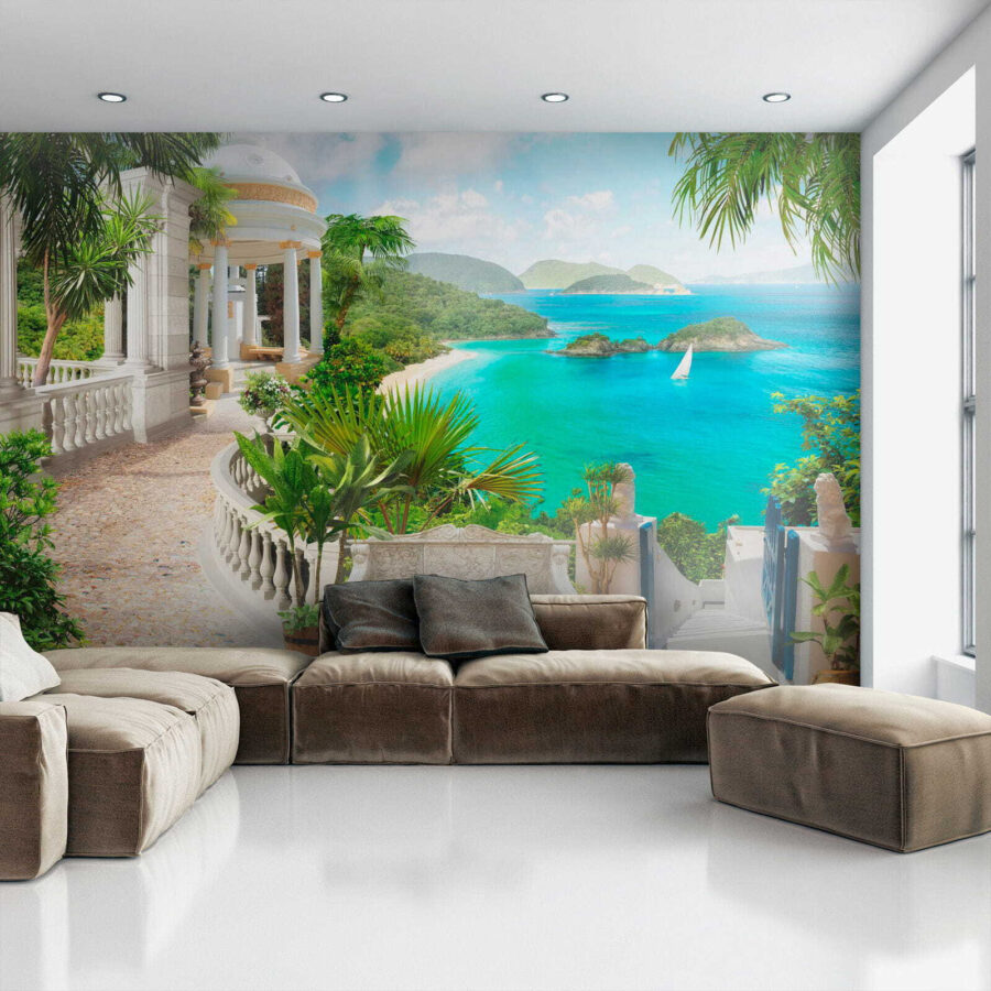 Stellen Sie sich vor: Sie betreten Ihr Zimmer und werden sofort in ein heiteres Paradies am Meer versetzt. Das ist genau das, was die “Fototapeten Plant in a Pot” bewirkt. Es ist, als hätten Sie einen Mini-Ferienort direkt an Ihrer Wand. Diese üppigen grünen Pflanzen, der friedliche weiße Pavillon und das atemberaubende türkisfarbene Wasser – das ist die perfekte Gelassenheit wie aus dem Bilderbuch!