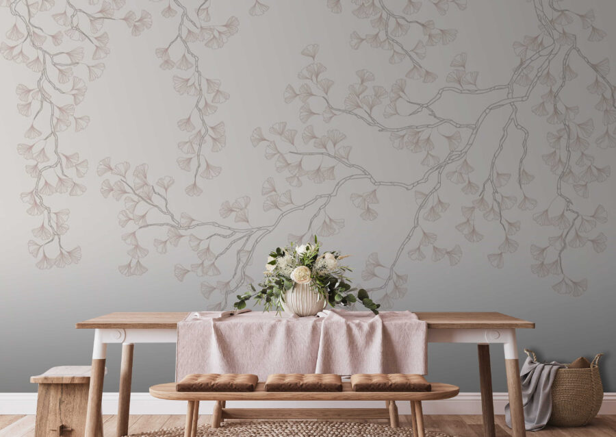 Lassen Sie uns über die Fototapete “Fließendes Muster von Ginkgo-Zweigen” sprechen. Stellen Sie sich vor, Sie betreten einen Raum, in dem diese zarten Linien und sanften Farbtöne der Ginkgo-Zweige mühelos über die Wand fließen. Es ist, als ob Sie sich ein Stück heiterer Natur in Ihr Zuhause holen würden. Perfekt für jeden Raum, in dem Sie sich einen Hauch von ruhiger Eleganz wünschen. Die Zweige scheinen sich fast in einer sanften Brise zu wiegen – vielleicht ertappt man sich sogar beim Träumen, während man sie betrachtet. Ob im Wohnzimmer, im Schlafzimmer oder sogar in einer gemütlichen Leseecke – dieses Wandbild verwandelt eine schlichte Wand in einen Ort der Ruhe.