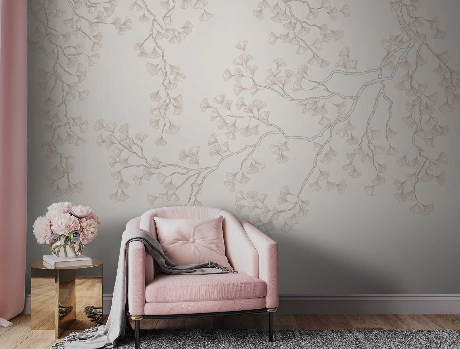 Lassen Sie uns über die Fototapete “Fließendes Muster von Ginkgo-Zweigen” sprechen. Stellen Sie sich vor, Sie betreten einen Raum, in dem diese zarten Linien und sanften Farbtöne der Ginkgo-Zweige mühelos über die Wand fließen. Es ist, als ob Sie sich ein Stück heiterer Natur in Ihr Zuhause holen würden. Perfekt für jeden Raum, in dem Sie sich einen Hauch von ruhiger Eleganz wünschen. Die Zweige scheinen sich fast in einer sanften Brise zu wiegen – vielleicht ertappt man sich sogar beim Träumen, während man sie betrachtet. Ob im Wohnzimmer, im Schlafzimmer oder sogar in einer gemütlichen Leseecke – dieses Wandbild verwandelt eine schlichte Wand in einen Ort der Ruhe.