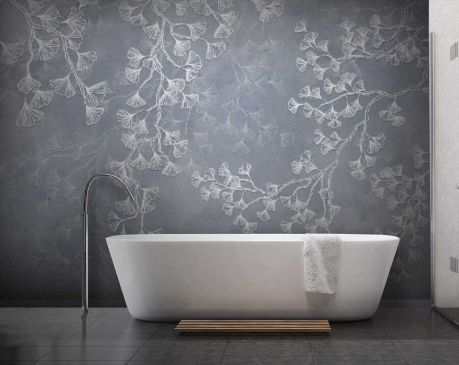 Verwandeln Sie eine schlichte Wand in einen Ort der Ruhe mit dieser Fototapete, auf der zarte Blätter auf einem nebligen Hintergrund schweben. Stellen Sie sich vor, Sie treten in eine sanfte Brise, in der die Natur leise flüstert und Frieden einkehrt. Dieses Kunstwerk füllt nicht nur einen Raum, es lädt auch zur Ruhe ein, wie ein Hauch frischer Luft. Die gedämpfte Farbpalette sorgt für Raffinesse, ohne aufdringlich zu wirken, und eignet sich daher perfekt für gemütliche Leseecken oder elegante Esszimmer. Stellen Sie sich vor, Sie laden Freunde ein, und alle Blicke richten sich auf die eleganten Zweige. Das ist subtil, beruhigend und sehr charmant!