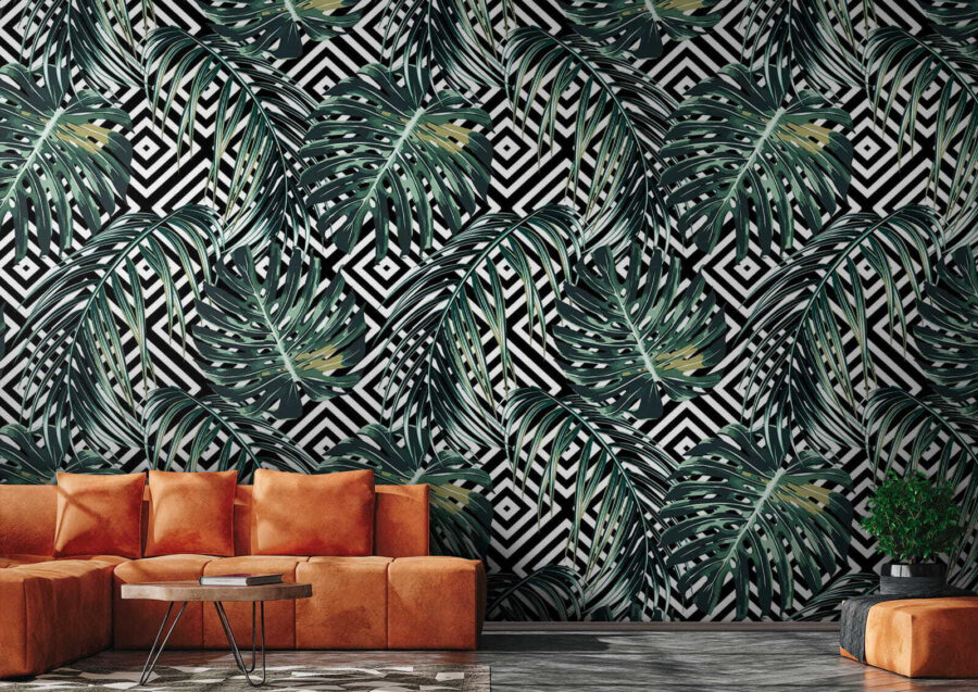 Verwandeln Sie Ihren Raum in einen tropischen Rückzugsort mit der „Wandtapete mit Blattmuster auf schwarz-weißem Hintergrund“. Es ist, als würden Sie ein kleines Stück Natur direkt in Ihr Wohnzimmer einladen. Stellen Sie sich vor, Sie sitzen auf dem Sofa, trinken Ihren Kaffee und sind umgeben von üppigen, grünen Blättern vor diesem auffälligen schwarz-weißen Hintergrund. Man könnte fast das beruhigende Rascheln einer Brise hören, nicht wahr? Diese Wandtapete bedeckt nicht nur eine Wand – sie bringt eine ganz neue Atmosphäre mit sich. Es ist für diejenigen, die die Natur schätzen, aber in einer schicken, modernen Umgebung aufblühen. Ob in Ihrer Leseecke oder als auffälliges Statement im Esszimmer – es wird garantiert für Gesprächsstoff sorgen und vielleicht sogar ein bisschen Neid bei Ihren Freunden wecken. Perfekt für alle, die etwas Flair hinzufügen möchten, ohne dabei zu übertreiben. Können Sie es sich nicht vorstellen? Holen Sie sich ein paar Pflanzen, legen Sie ein paar kuschelige Decken bereit und voilà – Ihre persönliche Oase erwartet Sie!