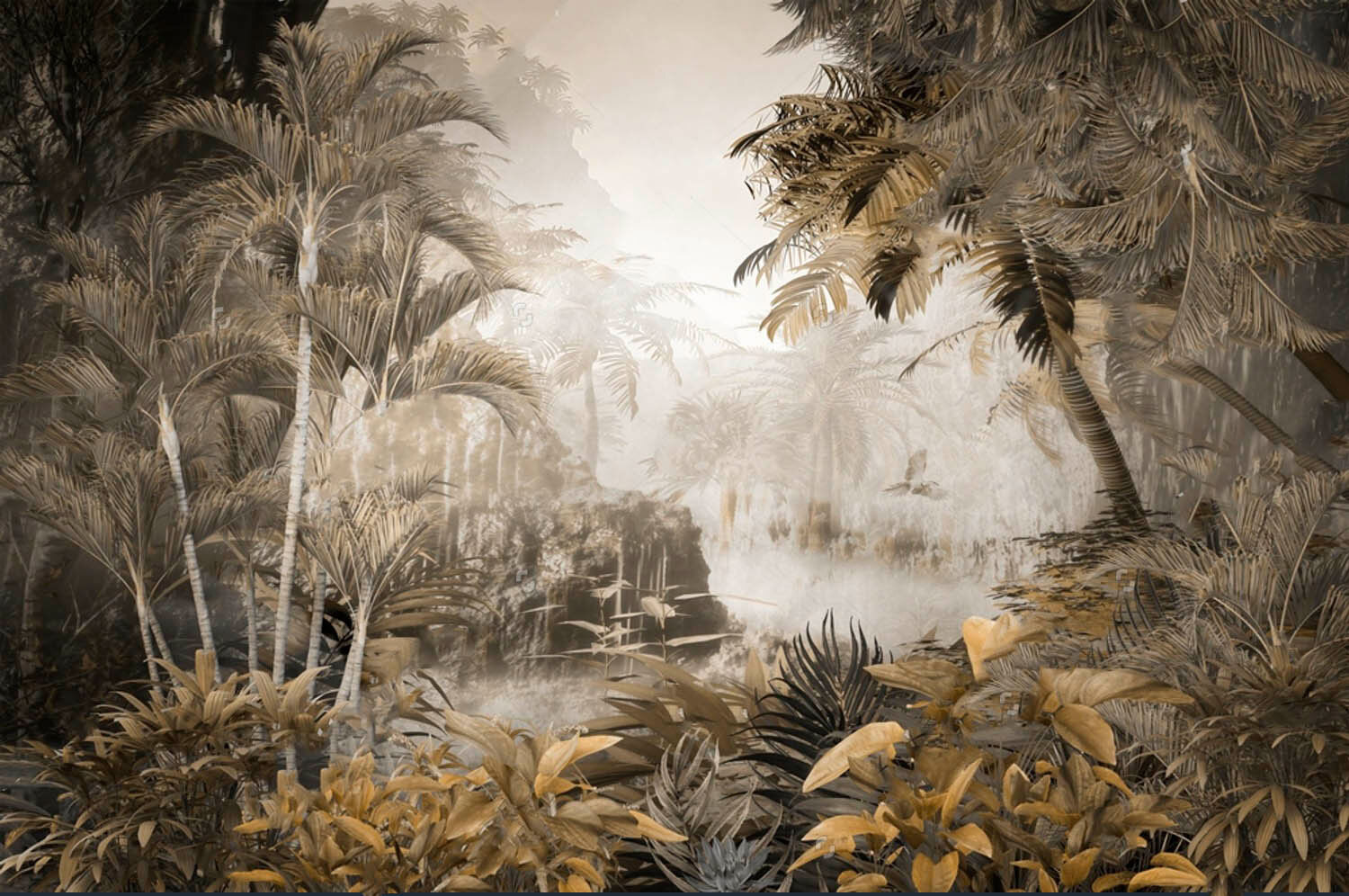 Fototapeten Üppiger tropischer Dschungel im Nebel