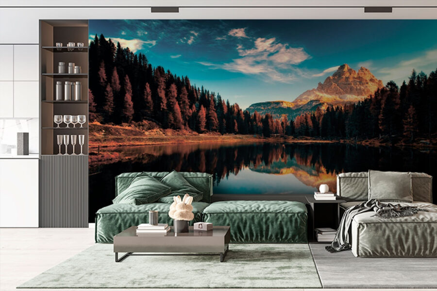 Stellen Sie sich vor, Sie betreten einen gemütlichen Raum und plötzlich fällt Ihr Blick auf dieses atemberaubende Wandbild, das einen ruhigen See zeigt, umgeben von majestätischen Bäumen und Bergen. Es ist wie ein kleiner Urlaub an Ihrer Wand! Die Farben sind so intensiv, dass sie Sie geradezu dazu einladen, Ihre Zehen ins Wasser zu tauchen. Stellen Sie sich vor, Sie empfangen Freunde und spüren, wie alle von einer Welle der Ruhe überkommen werden, während sie plaudern, an ihren Getränken nippen und dieses Meisterwerk betrachten. Es ist nicht nur Wandkunst, sondern auch ein Stimmungsmacher, ein herausragendes Stück, das jeden Raum in einen Rückzugsort in der Natur verwandelt. Können Sie nicht geradezu das sanfte Plätschern des Wassers und das Rascheln der Bäume hören? Dieses Wandbild bringt ein Stück Natur direkt in Ihr Zuhause – perfekt zum Träumen oder Planen Ihres nächsten Abenteuers. Wer würde das nicht wollen?