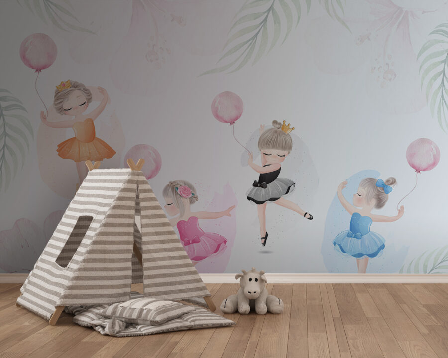 Stellen Sie sich dieses bezaubernde Wandbild vor, als würden Sie in ein Traumland eintauchen, in dem Ballerinas zwischen zarten Aquarellblüten tanzen. Es ist perfekt für ein Kinderzimmer geeignet und hat einen sanften Zauber, der jeden Raum in einen wunderlichen Rückzugsort verwandelt. Die kleinen Mädchen in Tutus, die mit Luftballons herumwirbeln, bringen so viel Persönlichkeit mit – man kann das Kichern und das märchenhafte Flüstern fast hören. Eine bezaubernde Art, Kreativität und Freude zu wecken, mit einem Hauch von Eleganz. Außerdem fügen sich die dezenten Farben wunderbar in jede Einrichtung ein. Stellen Sie sich vor, wie Ihr Kind jeden Tag mit diesem Bild aufwacht? Pure Verzauberung.