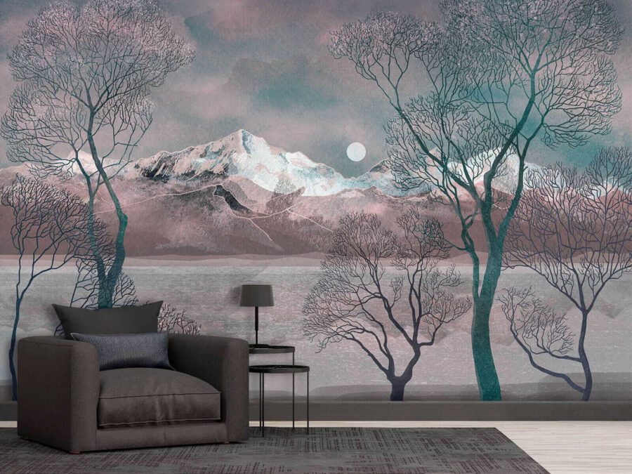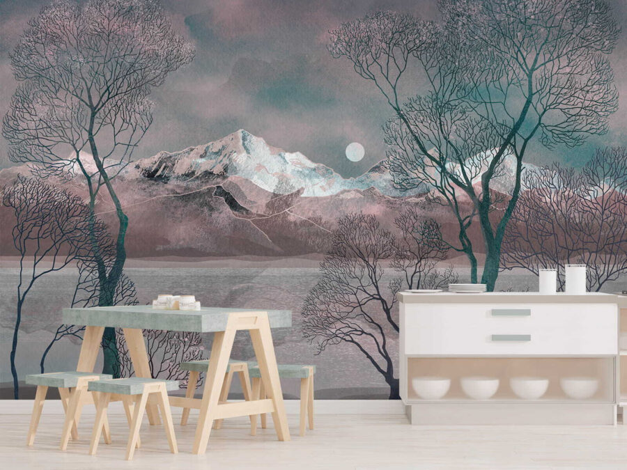Verwandeln Sie jeden Raum mit dieser atemberaubenden Wandtapete „Landschaft mit Bäumen und Bergen“. Es ist, als würde man die Natur ins Haus holen, ohne die lästigen Insekten! Stellen Sie sich vor, wie Sie beobachten, wie die Sonne hinter den Bergen hervorkommt und sanfte Schatten wirft, während die Bäume sanft im Wind schwanken. Die Farben strahlen Ruhe aus und eignen sich perfekt für eine gemütliche Leseecke oder sogar einen lebhaften Treffpunkt – jeder wird darüber sprechen wollen! Es verleiht Tiefe und Charakter, was großartig ist, denn wer möchte schon langweilige Wände? Also los, lassen Sie diese Tapete zum Blickfang werden, der allen den Atem raubt, wenn auch nur für einen Moment!