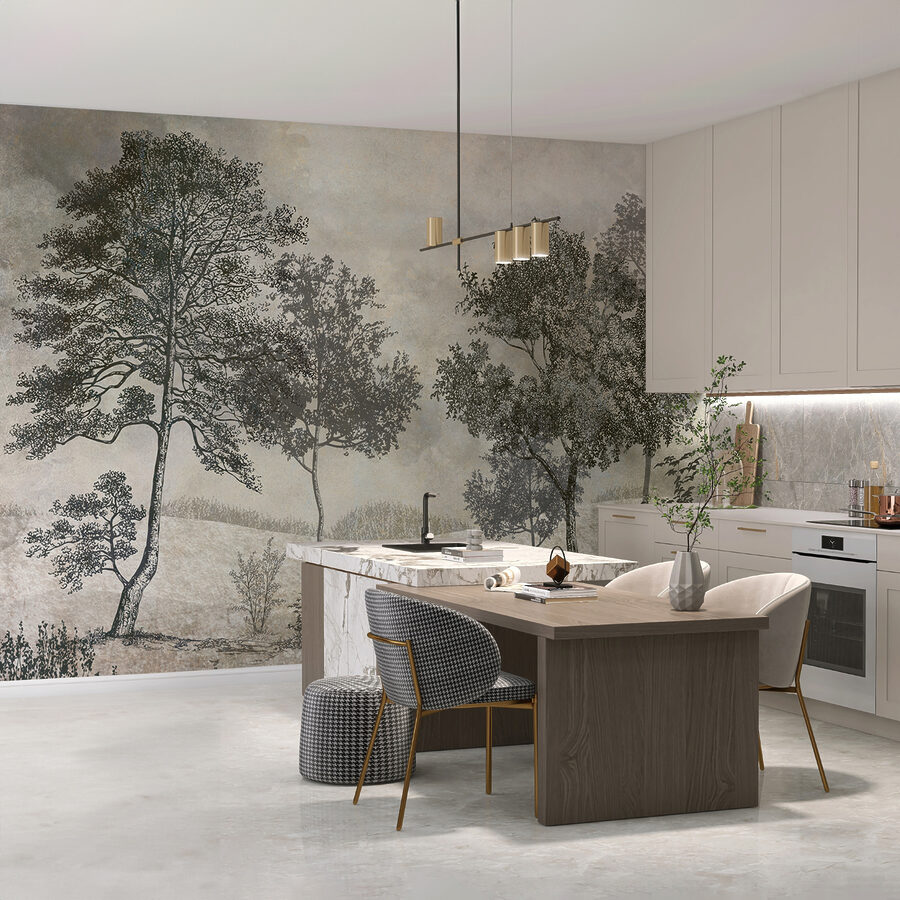 Fototapeten Malerei von Bäumen in einer Reihe
