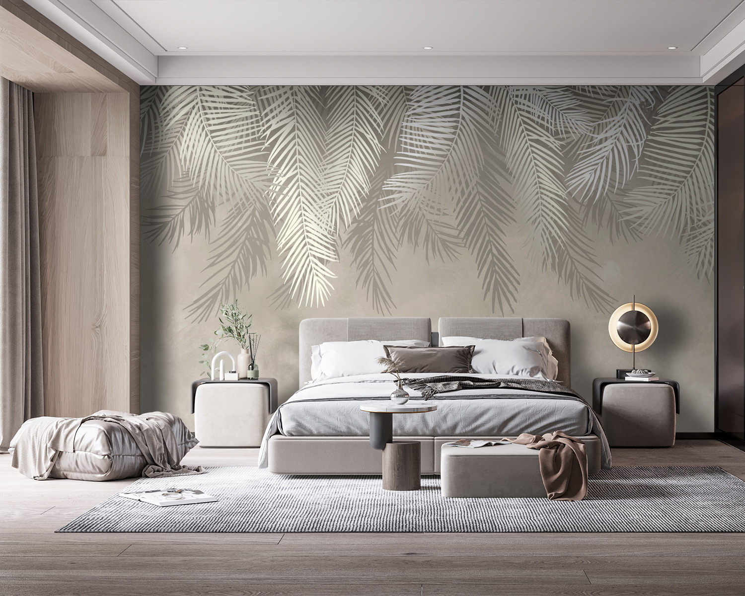 Verwandeln Sie Ihren Raum mit der sanften Eleganz unseres Wandbildes Tropical Leaves. Es ist, als würde man sich ein Stück Paradies ins Haus holen, nur ohne die Feuchtigkeit. Die sanften Farbtöne und die zarten Palmenblätter sorgen für einen Hauch von Gelassenheit, der Sie im Handumdrehen entspannen lässt. Stellen Sie sich vor, dass jeder Tag mit der beruhigenden Atmosphäre eines tropischen Urlaubs direkt in Ihrem Wohnzimmer beginnt. Diese Fototapete ist perfekt, um eine entspannte, stilvolle Atmosphäre zu schaffen – egal, ob Sie einen Kaffee trinken oder Freunde empfangen. Es ist die Art von Hintergrund, die zu Komplimenten einlädt und dafür sorgt, dass Sie sich zu Hause ein wenig wie ein glücklicher Rückzugsort fühlen. Machen Sie sich bereit für eine richtig gute Blatttherapie!