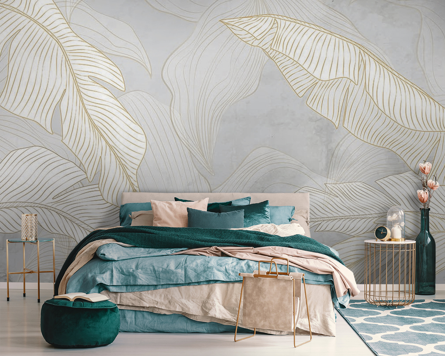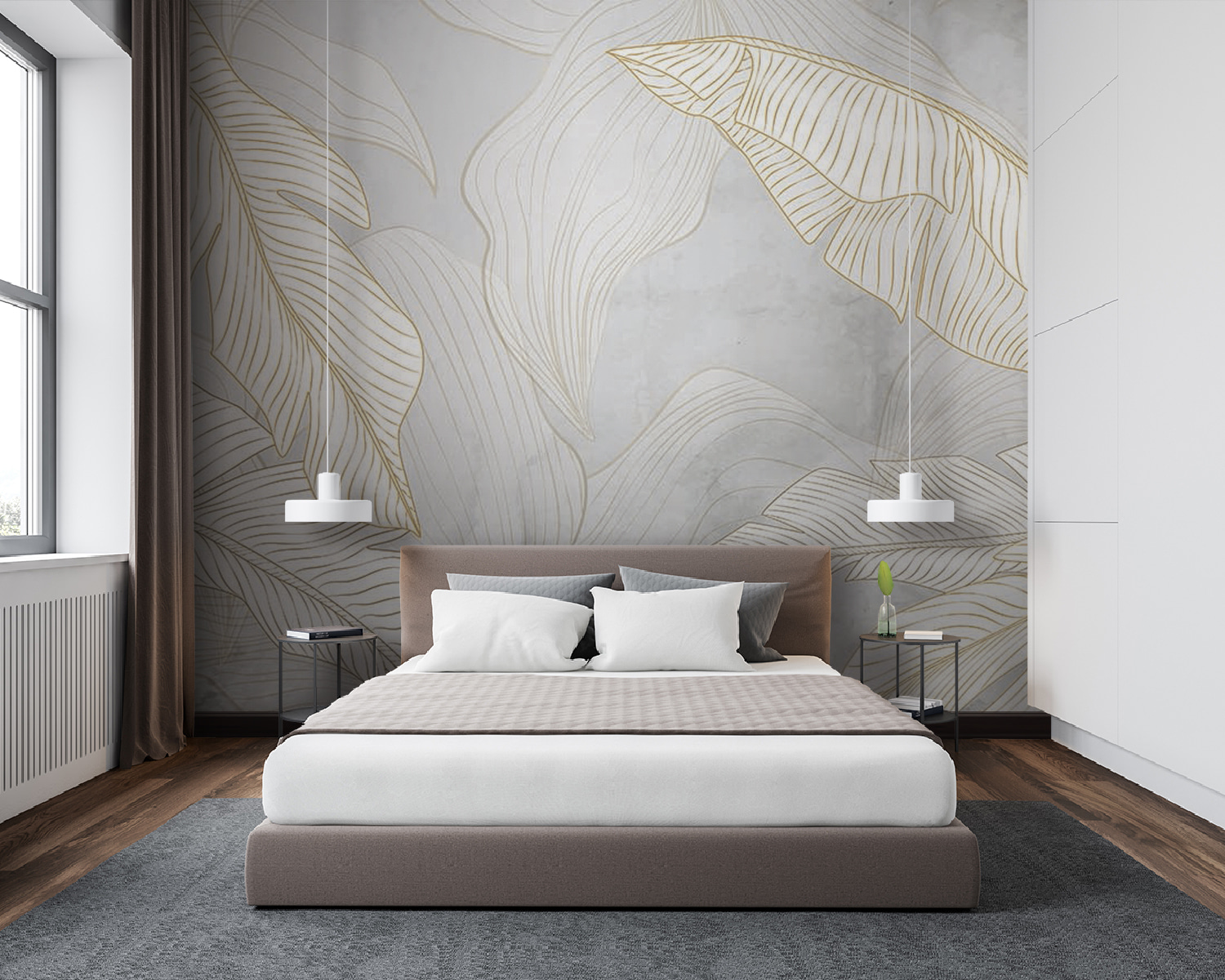 Stellen Sie sich vor, Ihr Zimmer mit dieser Fototapete “Weiße und orangefarbene Blätter auf grauem Hintergrund” in einen heiteren Zufluchtsort zu verwandeln. Es ist, als würden Sie jeden Tag eine Kunstgalerie betreten. Das elegante Palmblattdesign vermittelt eine subtile tropische Atmosphäre, während der weiche graue Hintergrund das Bild stilvoll und ruhig hält. Es ist die perfekte Mischung aus auffallend und dezent.