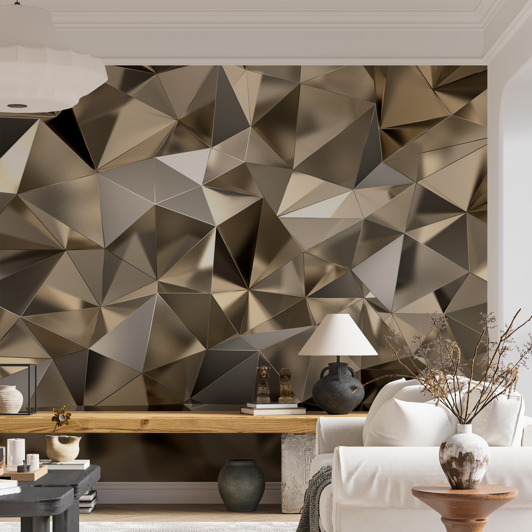 Verwandeln Sie jeden Raum in einen stilvollen Rückzugsort mit diesem auffälligen geometrischen Wandbild. Stellen Sie sich vor, Sie betreten Ihren Raum und werden von einem Tanz der Formen begrüßt, wobei jeder Winkel das Licht genau richtig einfängt. Es ist, als hätten Sie eine moderne Kunstgalerie direkt an Ihrer Wand – wie cool ist das denn? Dieses Wandbild eignet sich perfekt für Büros, Lounges oder gemütliche Ecken und sorgt für eine frische Atmosphäre, ohne übertrieben zu wirken. Ihre Freunde werden sich fragen, ob Sie einen Designer mit Geschmack eingestellt haben! Egal, ob es sich um ein lockeres Gespräch oder eine tiefgründige Diskussion handelt, dieser Hintergrund macht jeden Moment zu etwas Besonderem. Freuen Sie sich auf die Komplimente, die Sie bekommen werden!