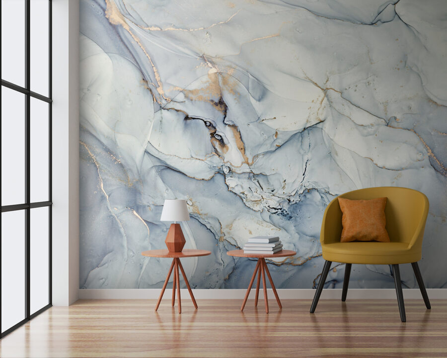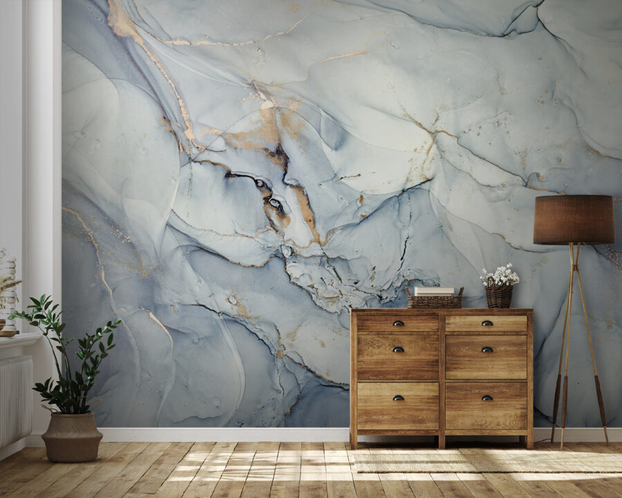 Verwandeln Sie jeden Raum mit dieser atemberaubenden abstrakten Marmortapete, in der wirbelnde Muster und subtile Farben eine Atmosphäre schaffen, die sowohl beruhigend als auch stilvoll ist. Es fühlt sich an, als würde man in ruhige Gewässer blicken oder vielleicht einen verträumten Tag in einer nebligen Landschaft verbringen. Stellen Sie sich vor, wie Sie an einem faulen Sonntagmorgen an Ihrem Kaffee nippen und Ihr Raum wie ein gemütlicher Rückzugsort wirkt. Perfekt, um einen Akzent zu setzen oder einfach einen Hauch von Eleganz zu verleihen. Es eignet sich hervorragend für Wohn- und Schlafzimmer oder sogar für die eine Wand, die um Aufmerksamkeit bettelt. Mit diesem Wandbild sind Wände nicht nur Wände – sie sind Teil des Erlebnisses!