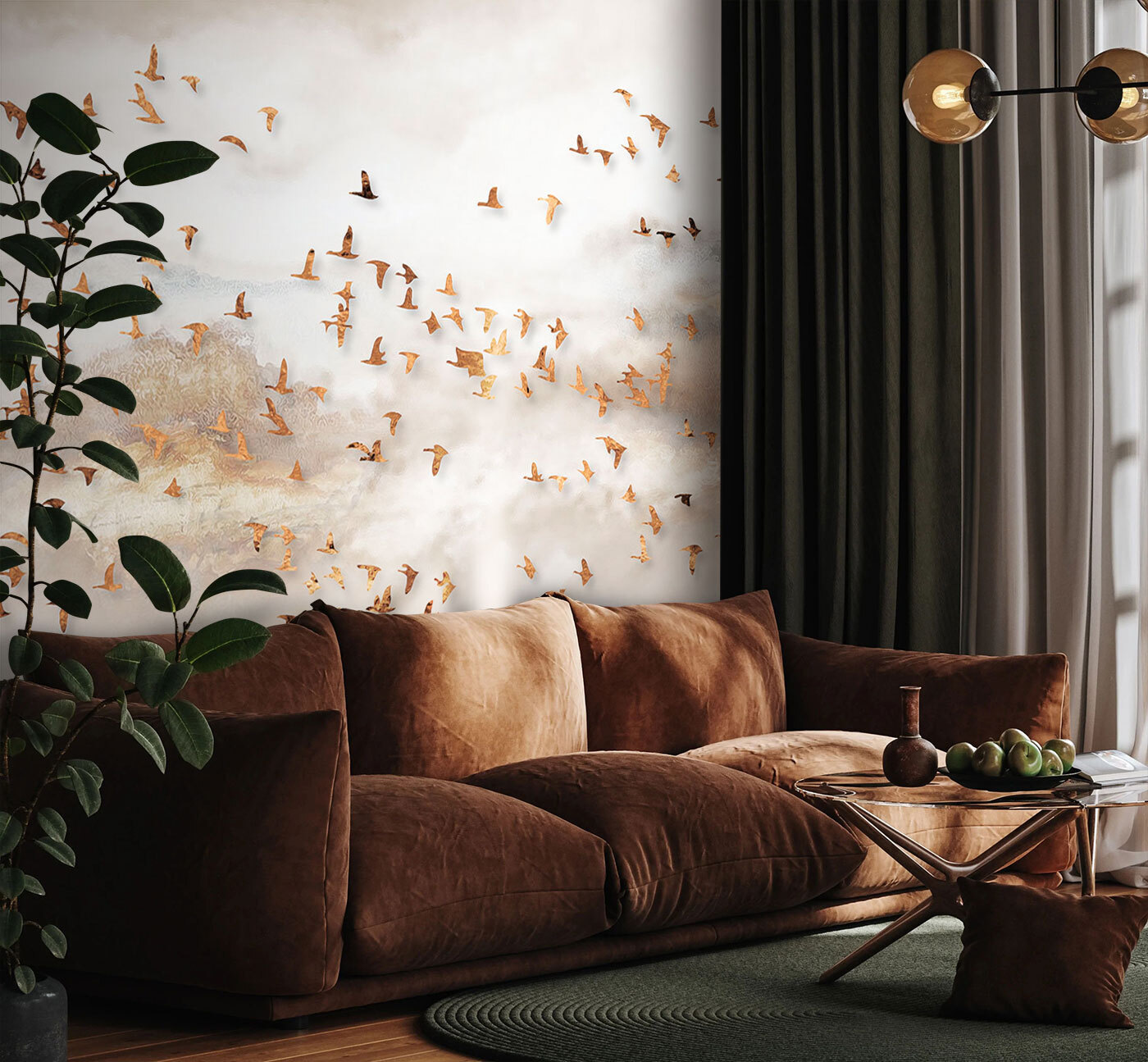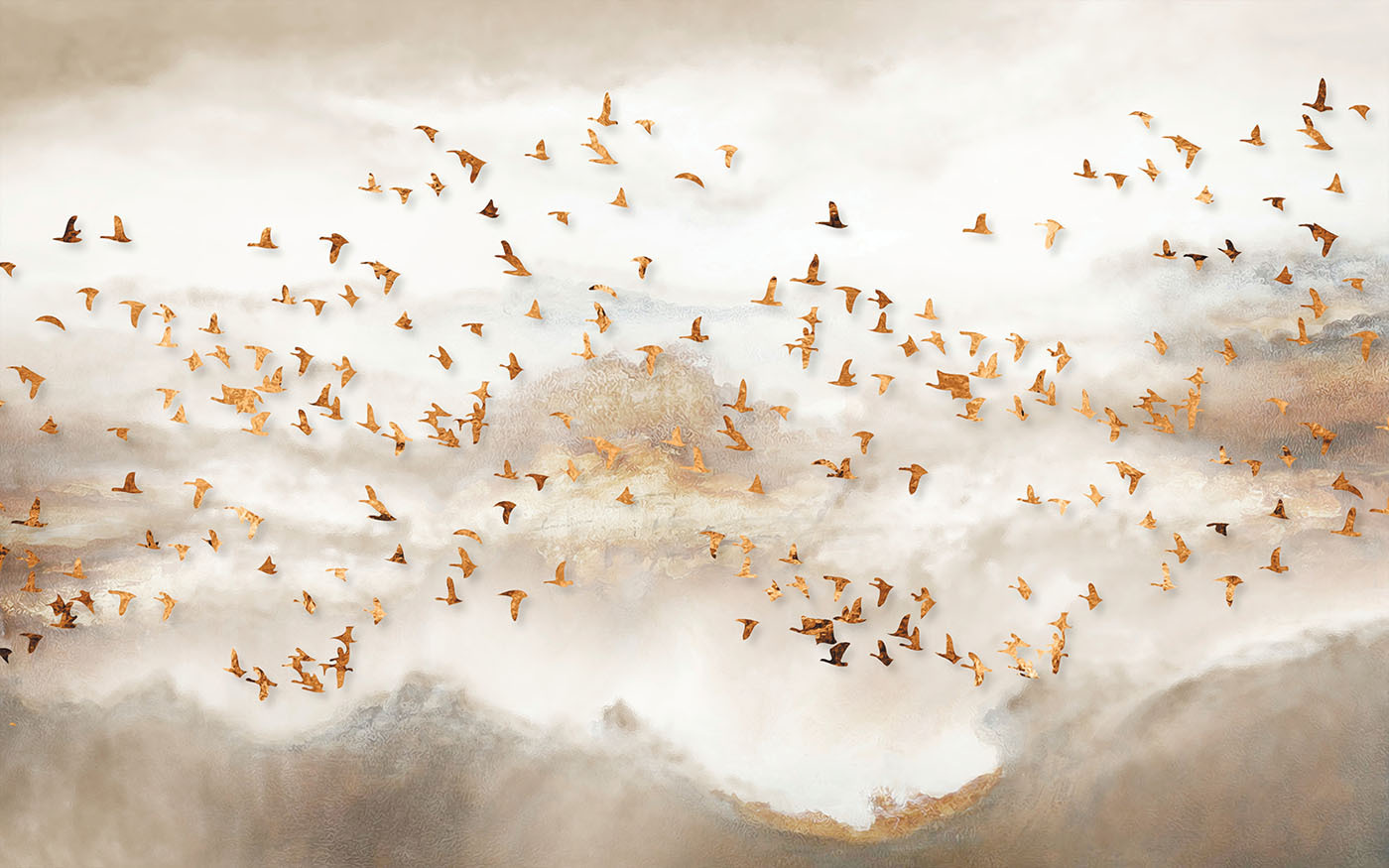 Verwandeln Sie jeden Raum in einen ruhigen Zufluchtsort mit dieser atemberaubenden Fototapete mit einer Gruppe von Vögeln, die durch einen verträumten Himmel fliegen. Die sanften Farben und die anmutigen Vögel schaffen eine Atmosphäre, die sich ruhig und erhebend anfühlt, wie eine frische Brise an einem Frühlingstag. Stellen Sie sich vor, Sie nippen an Ihrem Morgenkaffee oder entspannen sich nach einem langen Tag, während Sie diese fesselnde Szene betrachten. Es zieht Sie in seinen Bann und regt zu Tagträumen und Geschichten an. Außerdem verleiht es jedem Raum einen schicken Touch, egal ob es sich um ein gemütliches Wohnzimmer oder ein ruhiges Schlafzimmer handelt. Wer würde nicht gerne das Gefühl haben, durch die Wolken zu schweben?