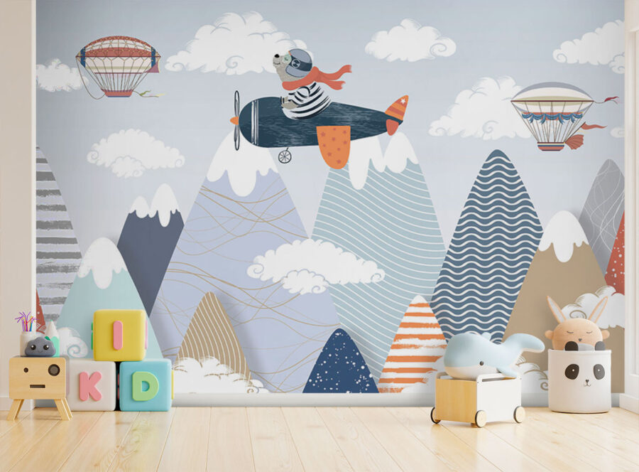 Stellen Sie sich vor, Sie betreten das Zimmer Ihres Kindes und werden von einer skurrilen Szene begrüßt, die direkt aus einer Abenteuergeschichte stammt! Dieses Wandbild mit fröhlichen Heißluftballons, die durch flauschige Wolken über farbenfrohe, abstrakte Berge gleiten, verleiht jedem Raum ein magisches Gefühl. Es ist ideal, um die Fantasie Ihrer Kinder anzuregen – sie könnten sich fühlen, als würden sie ihre eigene Expedition in den Himmel steuern. Warme, gemütliche Farben und verspielte Designs sorgen für einen besonderen Charme. Dieses Wandbild eignet sich perfekt für Kinderzimmer und Spielzimmer und ist nicht nur Dekoration, sondern ein Portal zu endlosen Abenteuern! Träume groß, segle hoch!