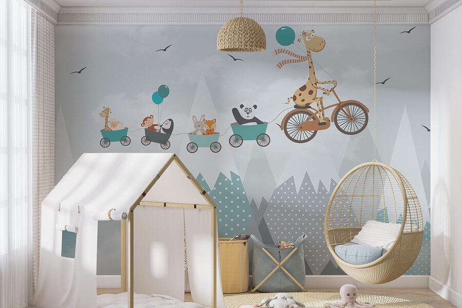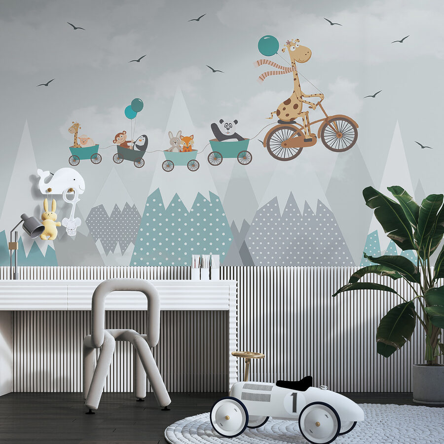Möchten Sie das Zimmer Ihres Kindes ein wenig verschönern? Dann sehen Sie sich das Wandbild “Giraffe auf dem Fahrrad” an – es ist wie ein entzückender Tagtraum, der sich an die Wand schmiegt. Diese lustige Fototapete zeigt eine abenteuerlustige Giraffe, die durch eine verträumte Landschaft radelt und dabei eine Reihe niedlicher Tiere im Schlepptau hat. Die sanften Pastellfarben und die verspielten Szenen entführen Ihr Kind in eine Welt der Fantasie und eignen sich daher perfekt für Kinderzimmer und Spielzimmer. Stellen Sie sich vor, wie sich die Gute-Nacht-Geschichten mit dieser Kulisse in unglaubliche Reisen verwandeln. Und diese charmanten Tupfen und Berge? Einfach zu niedlich. Dieses Wandbild ist nicht nur eine Dekoration – es ist eine Eintrittskarte ins Abenteuer, jeden Tag aufs Neue.