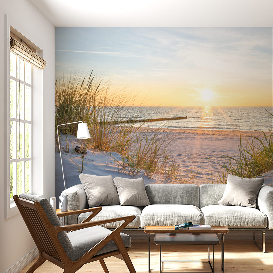 Verwandeln Sie jeden Raum in einen friedlichen Rückzugsort am Meer mit dieser atemberaubenden Fototapete, die üppiges Gras an einem sonnenverwöhnten Strand zeigt. Stellen Sie sich vor, Sie wachen mit den sanften Farbtönen eines Sonnenaufgangs auf, der auf dem Wasser tanzt – wer würde sich da nicht inspiriert fühlen? Es ist, als würde man sich einen Hauch von Urlaubsmagie direkt nach Hause holen. Diese Fototapete eignet sich perfekt für ein gemütliches Arbeitszimmer oder einen lebhaften Wohnbereich und lädt zu Tagträumen von sandigen Zehen und Meeresbrisen ein. Stellen Sie es sich vor: lachende Freunde, Strandtücher und das beruhigende Rauschen der Wellen im Hintergrund. Gibt es etwas Schöneres?