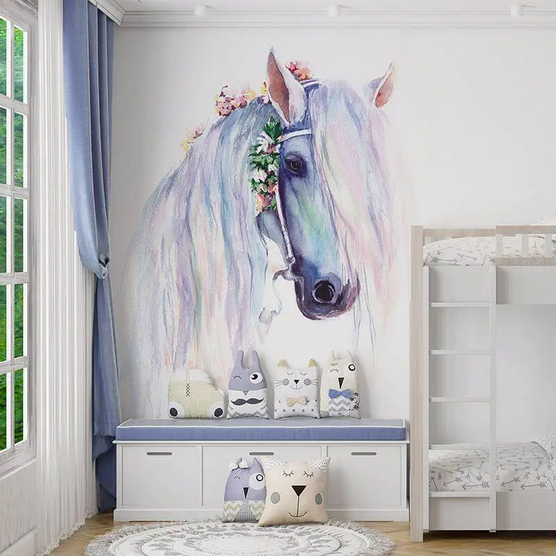 Verschönern Sie jeden Raum mit dieser reizvollen Fototapete, die ein majestätisches, blumengeschmücktes Pferd zeigt. Stellen Sie sich vor, Sie betreten einen Raum und werden von diesem sanften Riesen begrüßt, dessen elegante Mähne wie ein bunter Wasserfall herabfällt. Perfekt für Kinder und Liebhaber skurriler Dekorationen gleichermaßen, bringt es einen Hauch von Natur ins Haus. Die sanften Pastelltöne lassen alles leichter erscheinen und zaubern ein Lächeln ins Gesicht. Stellen Sie sich vor, Sie lesen mit Ihren Kleinen eine Geschichte, während Sie sich an dieses Wandbild schmiegen – jeder Blick ist ein kleines Abenteuer, das auf Sie wartet. Es ist nicht nur eine Dekoration, es ist eine Einladung zum Träumen!