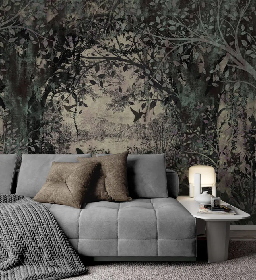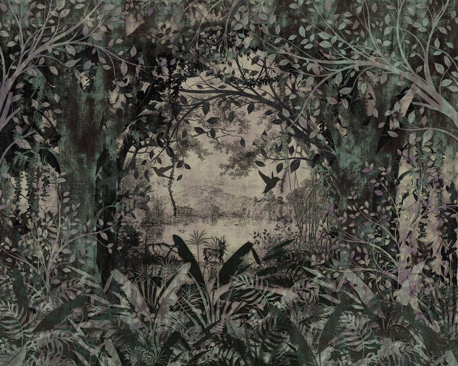 Fototapeten Verwunschener Wald, umrahmt von Laub Fototapeten Verwunschener Wald, umrahmt von Laub