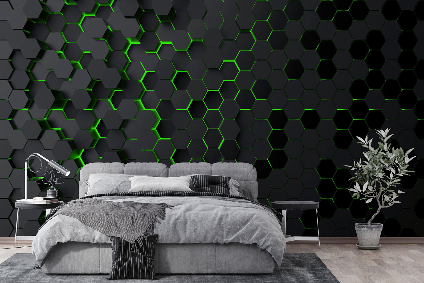 1 Rezension für Fototapeten Schwarze Sechsecke mit grünem Licht