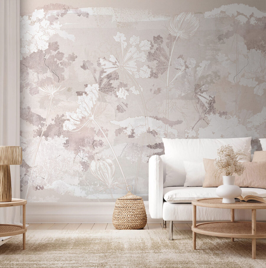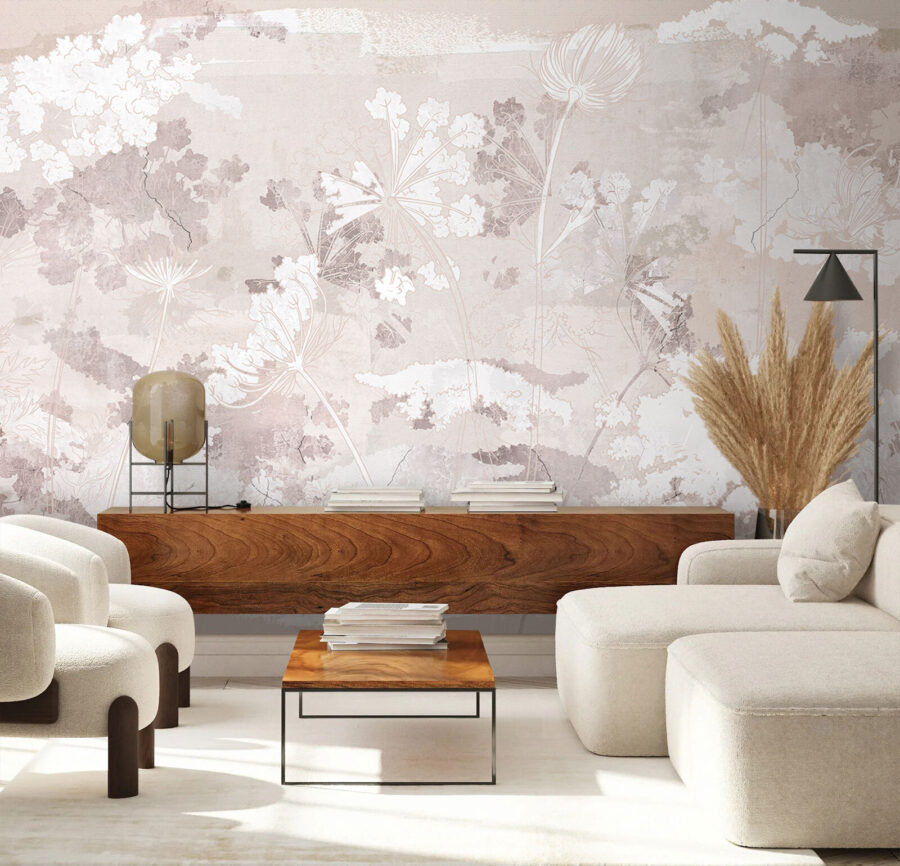 Verwandeln Sie jeden Raum in eine heitere Oase mit dieser Fototapete mit einem zarten weißen und grauen Blumenmuster. Stellen Sie sich vor, Sie betreten einen Raum, der sich so beruhigend anfühlt wie eine flüsternde Brise, in dem weiche Blütenblätter an der Wand zu tanzen scheinen. Es ist perfekt für die gemütlichen Ecken, in denen Sie Ihren Morgenkaffee trinken oder sich mit einem guten Buch zurückziehen. Die sanften Farbtöne lassen sich wunderbar mit jedem Einrichtungsstil kombinieren. Ob ein schickes Wohnzimmer oder ein ruhiges Schlafzimmer, dieses Wandbild hüllt Ihre Wände in schlichte Eleganz und schafft eine Kulisse, die frisch und einladend wirkt.