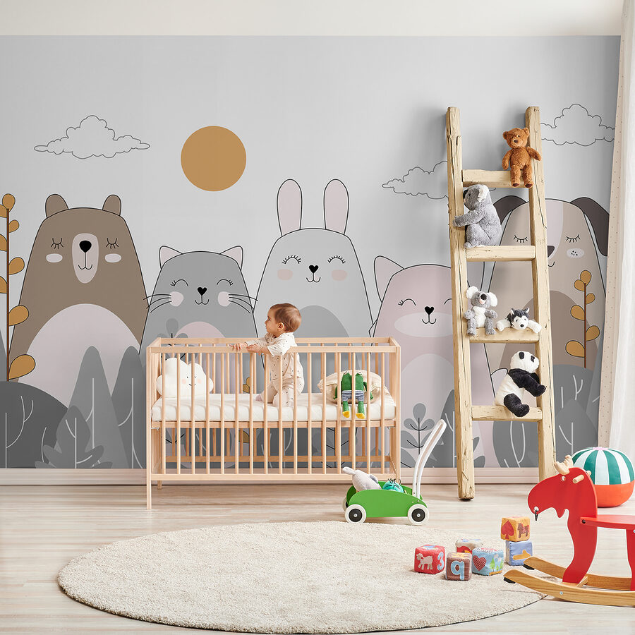 Verschönern Sie Ihr Kinderzimmer mit dieser entzückenden Fototapete “Happy Animals Enjoying the Sun”. Stellen Sie sich einen sonnenbeschienenen Wald vor, in dem liebenswerte Tiere einfach nur chillen und das Leben genießen – es ist wie ein Blick in eine skurrile Welt, in der alles warm und kuschelig ist. Die sanften Aquarelltöne dieses Wandgemäldes sind perfekt für Söhne, Töchter oder sogar für einen Hauch von Freude in jedem Raum und vermitteln eine verspielte und doch heitere Atmosphäre. Die Kinder werden es lieben, jeden Morgen von diesen freundlichen Gesichtern geweckt zu werden, die eine fröhliche Stimmung in den Tag bringen. Mal ehrlich, wer kann diesem bezaubernden Lächeln schon widerstehen? Dieser Druck ist mehr als nur Dekoration; er ist eine sonnige Umarmung für Ihre Wände. Perfekt, um die Fantasie anzuregen und jeden Raum zu etwas ganz Besonderem zu machen.