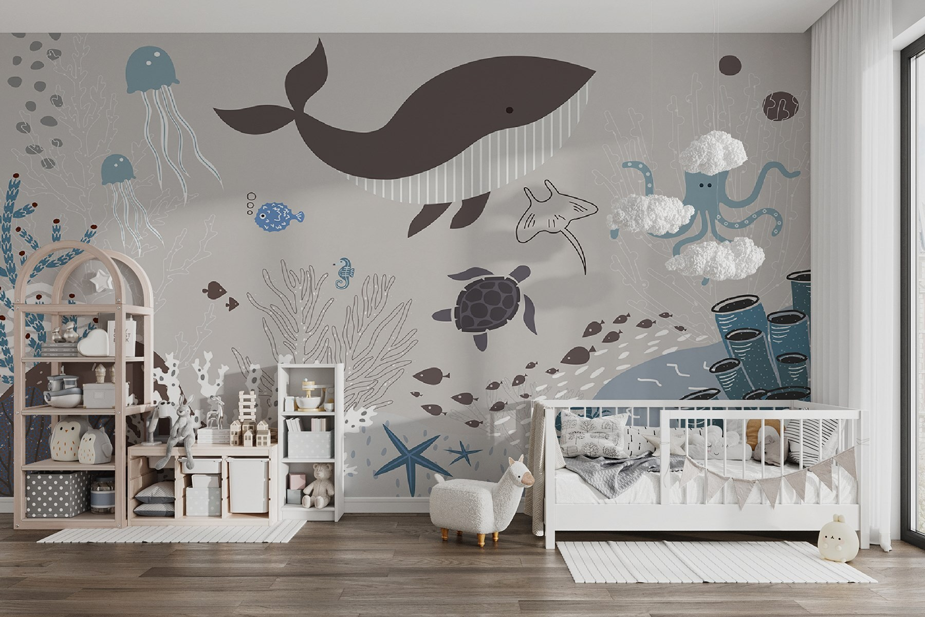 Stellen Sie sich den aufgeregten Gesichtsausdruck Ihres Kindes vor, wenn es umgeben von freundlichen Meeresbewohnern in den Schlaf gleitet. Es ist nicht nur Dekoration, es ist ein Abenteuer, jeden einzelnen Tag. Egal, ob Sie ein Kinderzimmer verschönern oder das Spielzimmer aufpeppen wollen, dieses Wandbild ist genau das Richtige. Niedlich, beruhigend und super cool – was kann man daran nicht lieben?