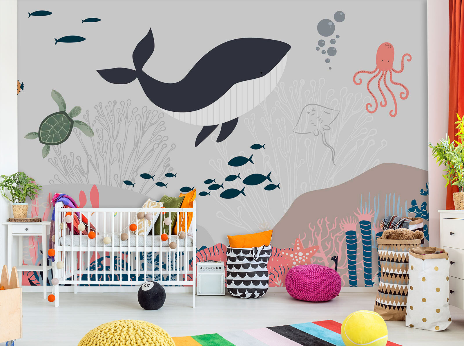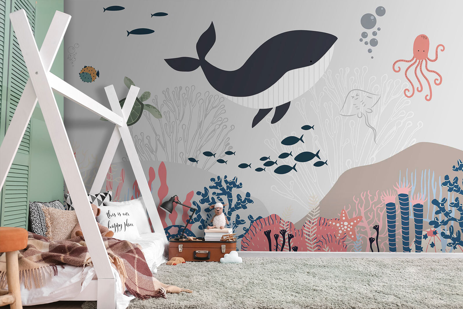 Möchten Sie das Zimmer Ihres Kindes mit einem Hauch von Spaß verschönern? Dann sehen Sie sich das Wandbild “Wal und Schildkröte unter Wasser” an! Dieses Wandbild ist nicht nur für die Wand gedacht – es ist ein Abenteuer unter dem Meer, direkt in Ihrem eigenen Zuhause. Stellen Sie sich einen fröhlichen Wal und eine neugierige Schildkröte vor, die gemeinsam in einer bunten Unterwasserwelt schwimmen. Es eignet sich perfekt, um die Fantasie kleiner Kinder anzuregen und Geschichten über Meeresabenteuer zu erzählen. Außerdem ist es weder zu bunt noch zu grell – nur eine sanfte Farbpalette, die beruhigt und unterhält. Stellen Sie sich vor, wie die Augen Ihres Kindes leuchten, wenn es den Oktopus oder den Fischschwarm entdeckt! Es ist, als hätte man ein Aquarium, ohne sich darum kümmern zu müssen. Eine entzückende, skurrile Note für jedes Schlafzimmer oder Spielzimmer. Tauchen Sie in dieses Wandbild ein und lassen Sie den Unterwasserzauber beginnen!