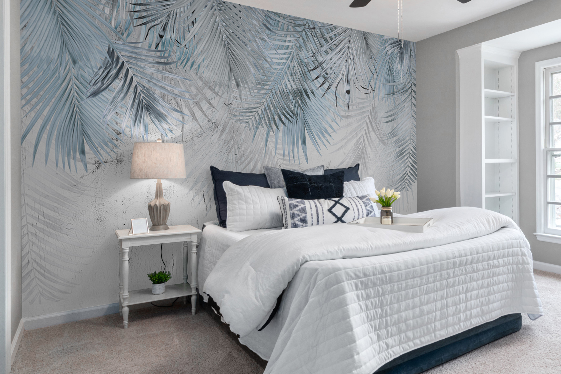 Verwandeln Sie Ihren Raum mit dem bezaubernden Touch von “Silver Palm Leaves on Textured Background”. Diese Fototapete sorgt für eine entspannte Atmosphäre, perfekt zum Träumen oder um es sich mit einem guten Buch gemütlich zu machen. Stellen Sie sich vor, Sie betreten einen Raum, der mit diesen eleganten Blättern geschmückt ist und der Sie an einen sonnenverwöhnten Tropenurlaub erinnert – oder vielleicht auch nur an Ihren übergroßen Lieblingssessel. Die sanften Farben vor einem dezenten Hintergrund laden zur Ruhe ein und machen jeden Nachmittag zu etwas Besonderem. Es ist, als würde man sich ein Stück Paradies nach Hause holen, nur ohne die Flugkosten. Lassen Sie sich mit diesem Wandbild täglich daran erinnern, langsamer zu machen und den Moment zu genießen. Perfekt für jede Wand, die ein wenig Liebe braucht!