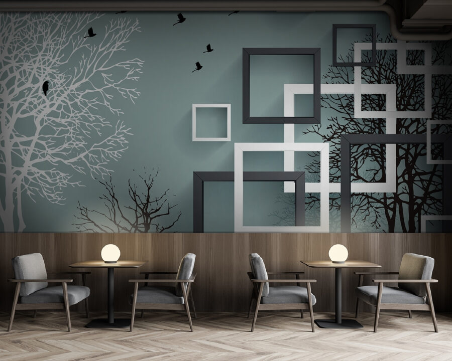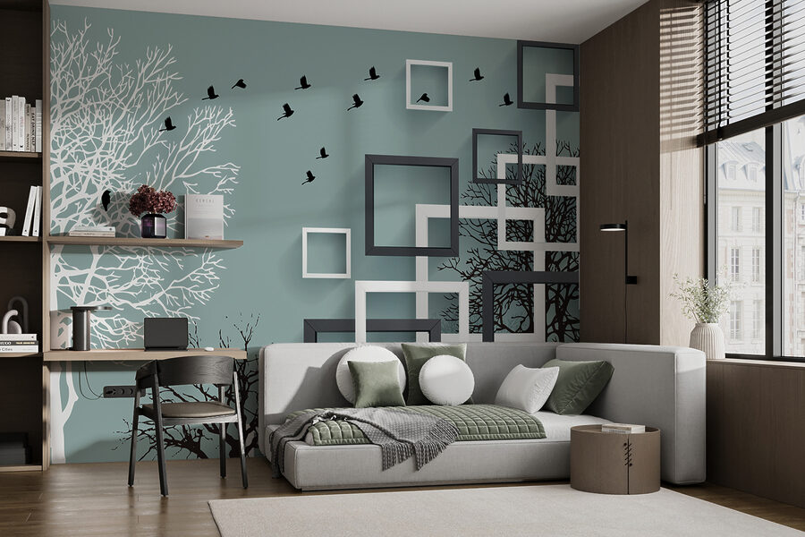 Stellen Sie sich vor, Sie betreten einen Raum und spüren sofort einen Hauch von frischer Luft. Das ist die Stimmung, die diese Fototapete vermittelt! Mit ihren eleganten Bäumen und verspielten Vögeln verwandelt sie jeden Raum in ein kleines Stück Natur. Es ist, als ob sich die Natur selbst in Ihr Zuhause einladen würde. Und die geometrischen Rahmen? Sie verleihen dem Ganzen eine eigenwillige Note und lassen es künstlerisch wirken, ohne sich zu sehr anzustrengen.