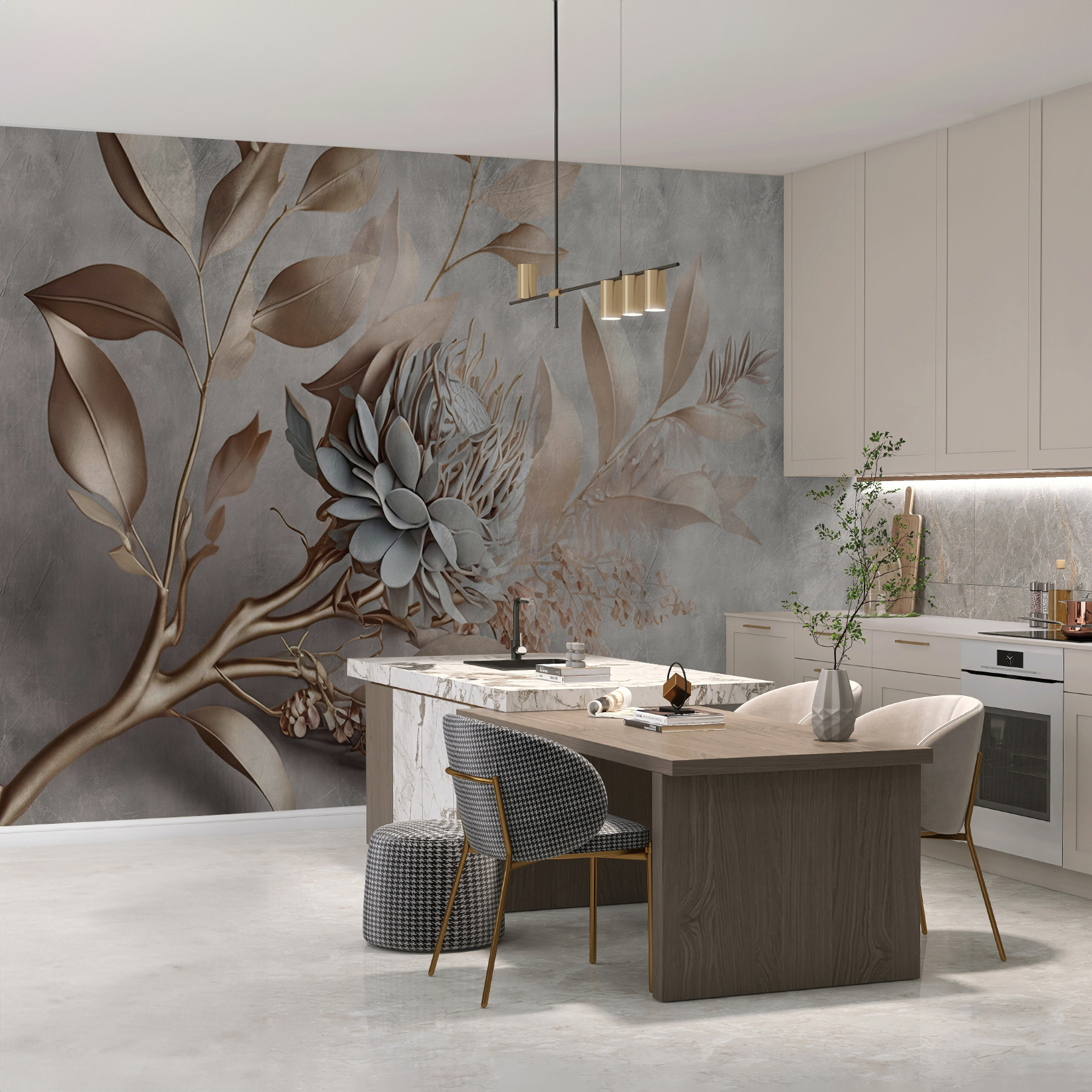 Stellen Sie sich vor, wie Sie morgens an Ihrem Kaffee nippen, das Sonnenlicht durchdringt und diese wunderschönen Blüten Ihren Tag erhellen. Diese Fototapete eignet sich perfekt für eine gemütliche Leseecke oder einen lebhaften Wohnbereich. Sie vermittelt Raffinesse und wirkt dennoch warm und einladend. Es ist ein einfacher Weg, um eine ruhige Atmosphäre zu schaffen, die zum Verweilen einlädt, vielleicht mit einem guten Buch oder einem Gespräch mit einem Freund. Außerdem ist es ein toller Gesprächsanlass! Wer wäre nicht neugierig auf diese herrlichen Blumen? Perfekt, um Ihrer Einrichtung einen Hauch von Charme zu verleihen, ohne sie zu überwältigen.