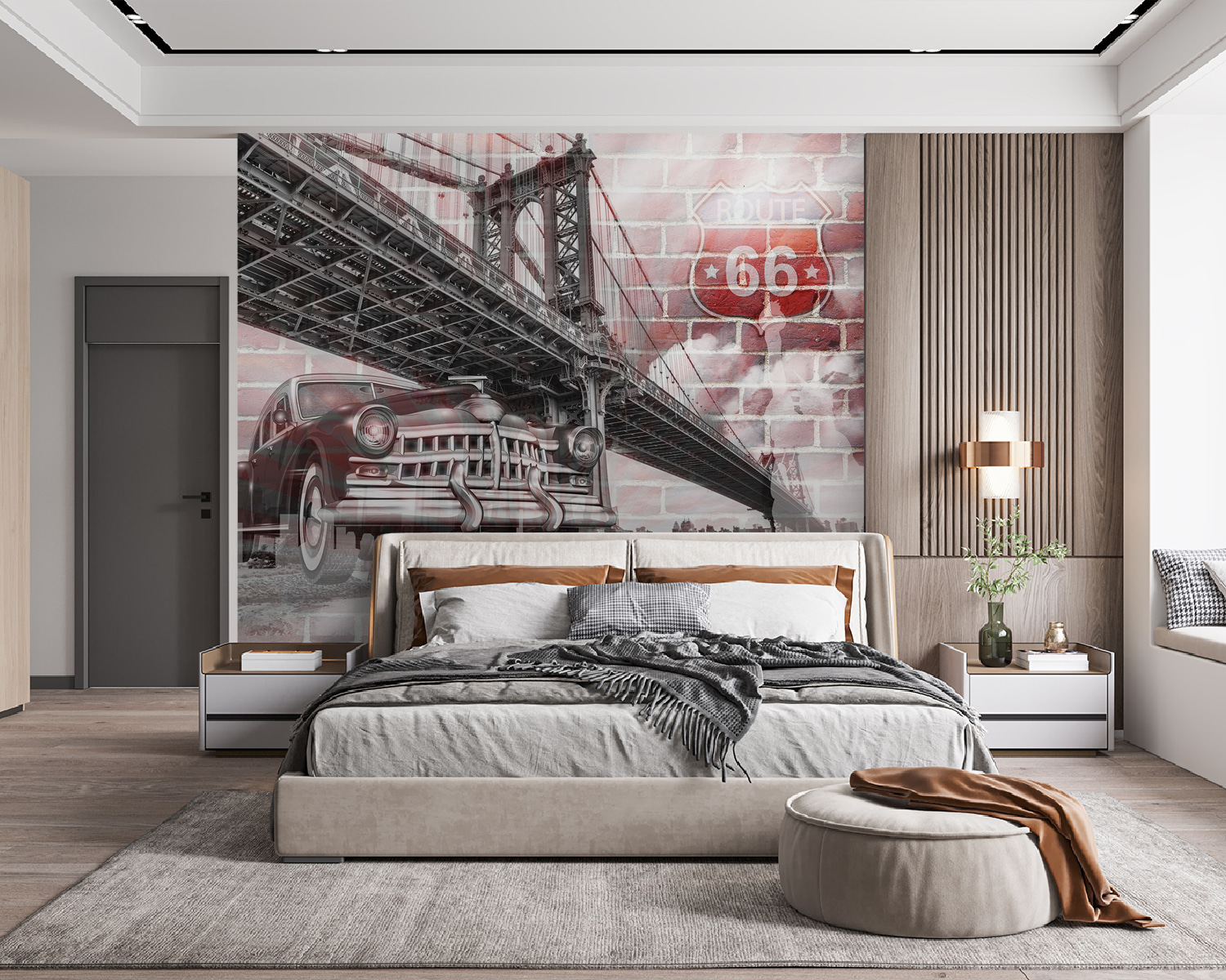 Verwandeln Sie jeden Raum in eine nostalgische Reise mit den “Fototapeten Bridge over a River”. Stellen Sie sich vor, Sie betreten einen Raum, der wie eine Szene aus einem klassischen Road-Trip-Film wirkt. Der zeitlose Oldtimer, umrahmt von einer atemberaubenden Brücke, lädt zum Träumen von Abenteuern ein. Stellen Sie es sich über einer gemütlichen Couch oder in einer Garage vor, die zum Männerdomizil umfunktioniert wurde. Dieses Wandbild ist nicht nur Kunst, sondern auch ein Gesprächsanlass. Freunde werden gerne ihre eigenen Reisegeschichten erzählen. Und mal ehrlich – wer würde nicht gerne das Gefühl haben, dass er die Route 66 entlangfährt? Es ist nicht nur Dekoration, sondern eine Atmosphäre, die Wärme und einen Hauch von Fernweh an jede Wand bringt.