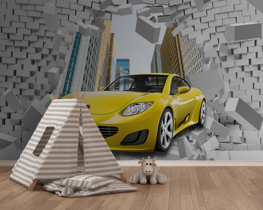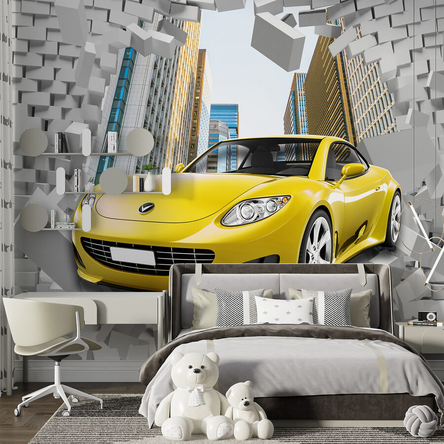 Haben Sie schon einmal daran gedacht, einen Hauch von Aufregung in Ihr Zimmer zu bringen? Stellen Sie sich einen Sportwagen vor, der direkt an Ihrer Wand durch eine Backsteinmauer bricht! Diese Fototapete ist perfekt, wenn Sie einen kleinen Autoliebhaber im Haus haben – oder auch nur jemanden, der ein bisschen dramatisches Flair liebt. Es gehört zu den Kollektionen “Automobile” und “Brick Wall”, eignet sich aber auch hervorragend für Kinderzimmer. Die Energie der krachenden Ziegelsteine und des schnittigen, gelben Autos bringt Farbe und Action ins Spiel. Es ist wie eine Dosis Adrenalin für Ihre Einrichtung. Können Sie sich die Gesichter Ihrer Gäste vorstellen? Ein absoluter Hingucker.