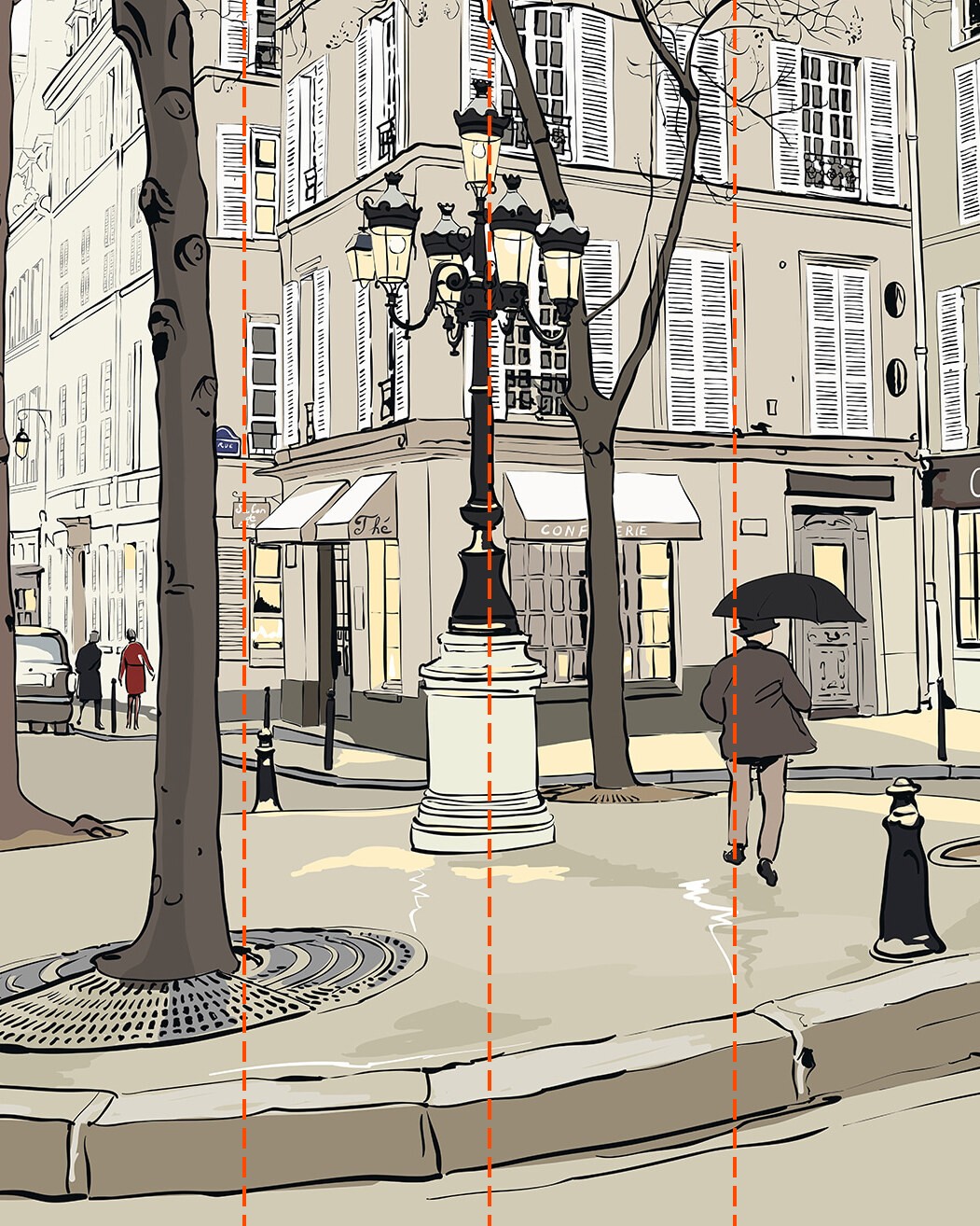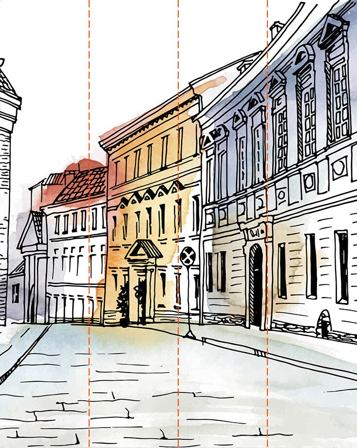 Ihre Tapete wird nach den von Ihnen während des Bestellvorgangs angegebenen Maßen angefertigt. Die Leinwand wird in praktische Abschnitte von jeweils bis zu 50 cm Breite unterteilt.