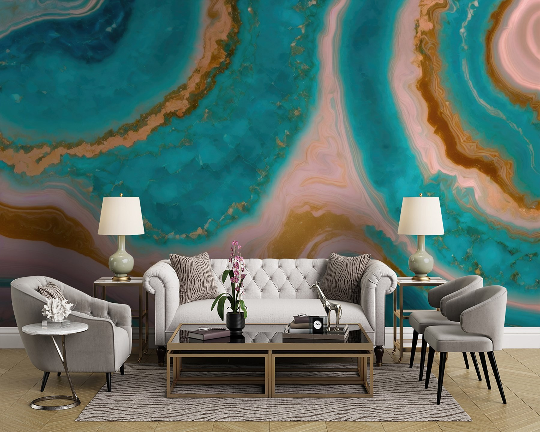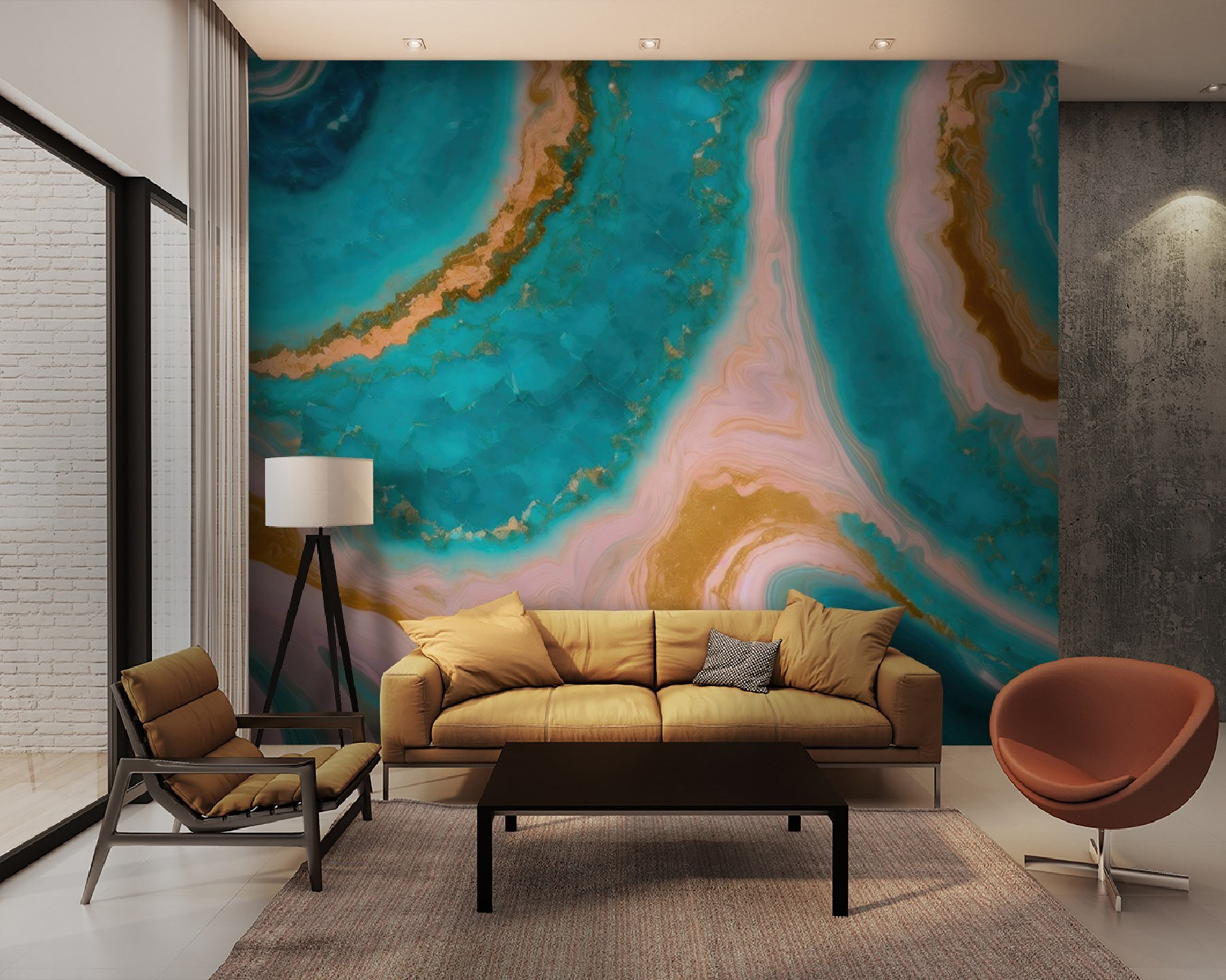 Verwandeln Sie Ihren Raum mit dieser lebendigen Fototapete, die eine faszinierende blaue und orange marmorierte Oberfläche zeigt. Stellen Sie sich vor, Sie betreten einen Raum, der sich wie eine Meeresbrise an einem warmen Tag anfühlt. Die fließenden Muster und wirbelnden Farben schaffen eine traumhafte Atmosphäre, die die Kreativität anregt oder einfach nur eine beruhigende Kulisse für die Entspannung bietet. Es ist nicht nur Dekoration, sondern auch ein Gesprächsanlass und ein Stimmungsaufheller. Freunde bleiben vielleicht stehen und fragen sich, wo Sie so ein einzigartiges Stück gefunden haben. Jeder Blick bietet ein neues Gefühl, als ob das Wandbild lebendig wäre. Perfekt für jeden Raum, der sich nach künstlerischem Flair sehnt!