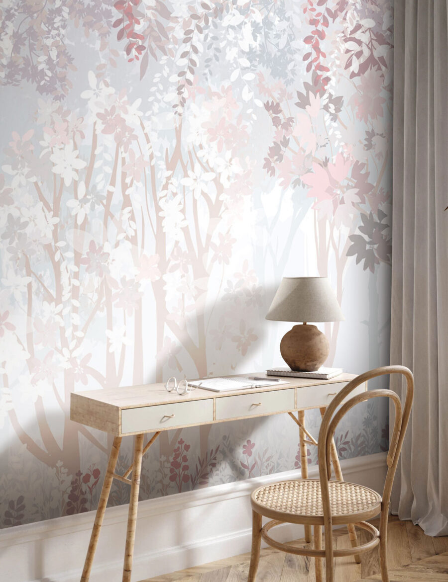 Stellen Sie sich vor, dass Sie jedes Mal, wenn Sie den Raum betreten, in einen pastellfarbenen Traum eintauchen. Das ist es, was Sie mit dieser Fototapete “Pastellfarbener Wald mit zartem Laub” bekommen. Es ist wie eine sanfte Umarmung der Natur, mit sanften Rosa-, Beige- und Lavendelfarbtönen, die sich durch eine Waldszene ziehen. Perfekt für ein Kinderzimmer, besonders für die Ecke Ihres kleinen Abenteurers, oder sogar für Ihr eigenes Schlafzimmer – denn seien wir mal ehrlich, wer braucht nicht ein bisschen Laune? Das zarte Blattwerk wirkt wie ein Hauch von frischer Luft und sorgt für eine heitere, beruhigende Stimmung. Ideal für Räume, in denen Sie der Hektik entfliehen möchten – stellen Sie sich vor, Sie machen es sich hier mit einem Buch gemütlich. Glückselig! Kinder werden es lieben, und auch Erwachsene werden sich beim Träumen wiederfinden. Und hey, es ist ein Gesprächsanlass – ein kleiner unerwarteter Hauch von Magie an Ihren Wänden. Also, nur zu, gönnen Sie sich ein bisschen Waldfantasie bei sich zu Hause!