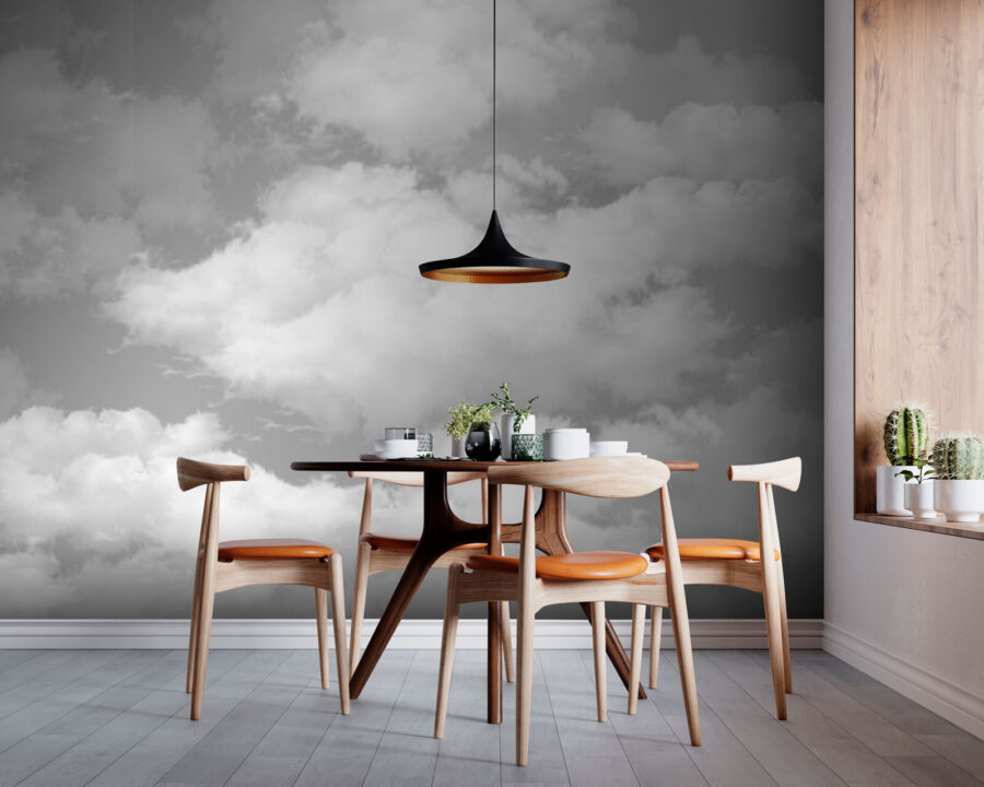 Stellen Sie sich vor, Sie betreten einen Raum, in dem flauschige Wolken über einem weichen, grauen Himmel schweben – klingt traumhaft, oder? Diese Fototapete macht genau das und bringt ein Stück Gelassenheit in Ihren Raum. Stellen Sie sich eine gemütliche Leseecke oder ein beruhigendes Schlafzimmer vor, das in eine von Wolken inspirierte Umarmung gehüllt ist. Es ist die Art von Hintergrund, der die Sorgen sanft vertreibt und Ruhe ausstrahlt.