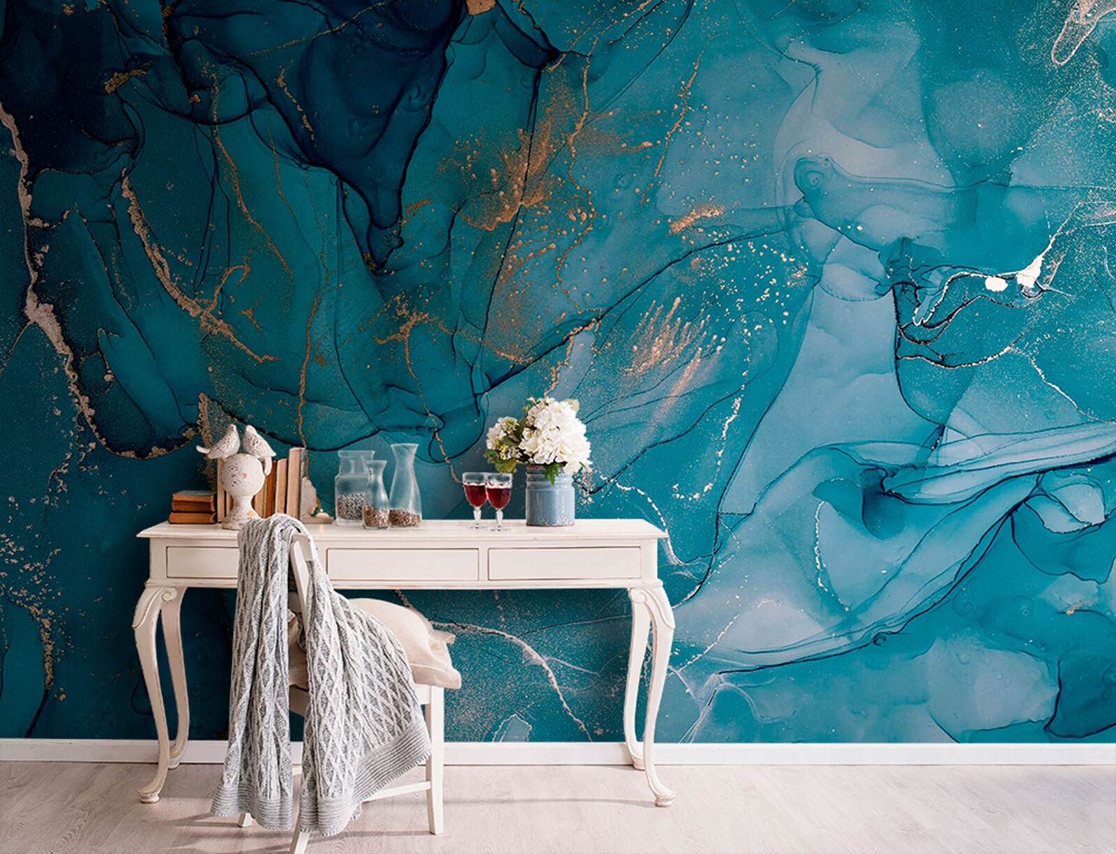 Einen Raum umzugestalten ist wie ein frischer Windhauch, und dieses Wandbild tut genau das! Stellen Sie sich eine gemütliche Ecke Ihres Zuhauses vor, die mit wirbelnden Blautönen geschmückt ist, die fast wie eine ruhige Meeresbrise wirken. Das Design tanzt mit subtilen Akzenten, die ins Auge fallen, ohne aufdringlich zu sein, und schafft so eine beruhigende und doch stilvolle Atmosphäre. Freunde werden sich fragen: “Wow, wo hast du das denn gefunden?” Perfekt für das Wohnzimmer oder einen kreativen Arbeitsbereich, lädt es zu Gesprächen ein und regt zur Inspiration an. Es ist mehr als nur Dekoration; es ist ein kleines Kunstwerk, das zu Tagträumen anregt und jeden in diesem Raum verbrachten Moment verschönert. Wer würde sich nicht gerne von solch einer kühlen, gelassenen Schönheit umgeben lassen?