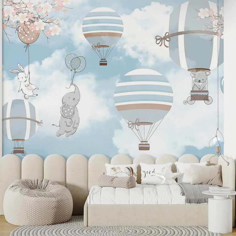 Sie haben ein Kinderzimmer, das einen Hauch von Laune braucht? Dann sollten Sie sich diese bezaubernde Fototapete ansehen, auf der ein Haufen liebenswerter Elefanten in Heißluftballons fliegt. Stellen Sie sich das vor: sanfte Blau- und Grautöne, eine Parade verspielter Dickhäuter und ein skurriler Himmelshintergrund, der wie ein Traum wirkt. Perfekt, um endloses Staunen und Abenteuer in den Räumen der Kleinen zu wecken. Stellen Sie sich vor, wie die Augen Ihres Sohnes leuchten, wenn er unter fröhlichen Elefanten und bezaubernden Luftballons in den Schlaf fällt. Dieses Wandbild ist nicht nur Dekoration – es ist ein Tor zur Fantasie. Füllen Sie das Zimmer Ihres Kindes mit Freude und lassen Sie das Abenteuer fliegen!