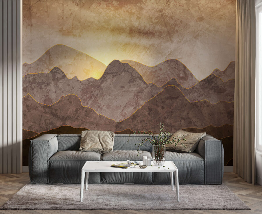 Sehen Sie sich diese atemberaubende Fototapete mit dem Titel “Fototapeten Painting of Mountains with Yellow Lines” an. Es ist, als hätte man seinen persönlichen Ruhepol direkt an der Wand. Die sanfte Mischung aus Erdtönen und den markanten gelben Linien erweckt jeden Raum zum Leben und verbreitet eine warme, einladende Atmosphäre.