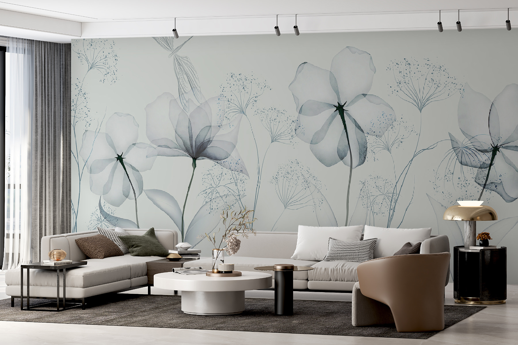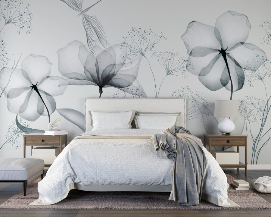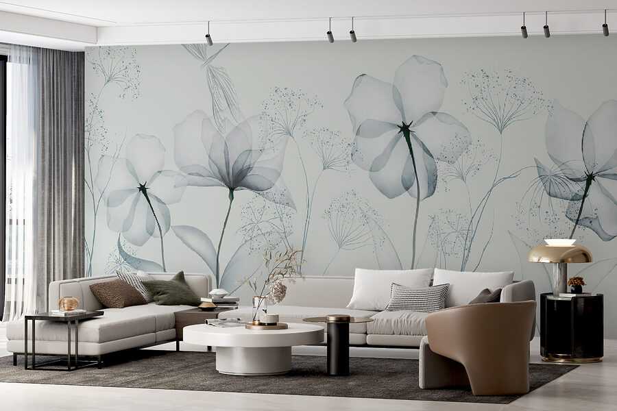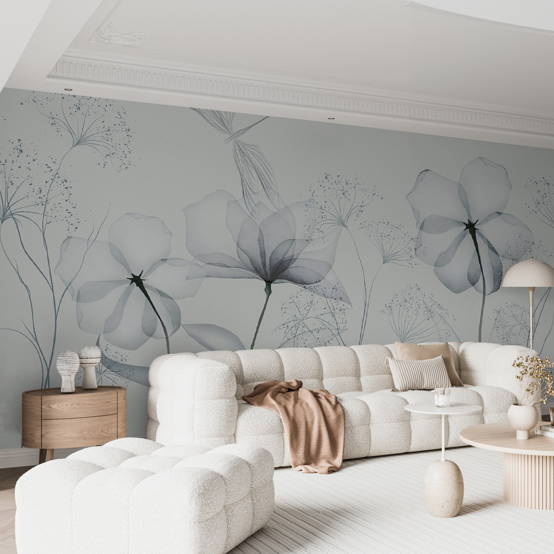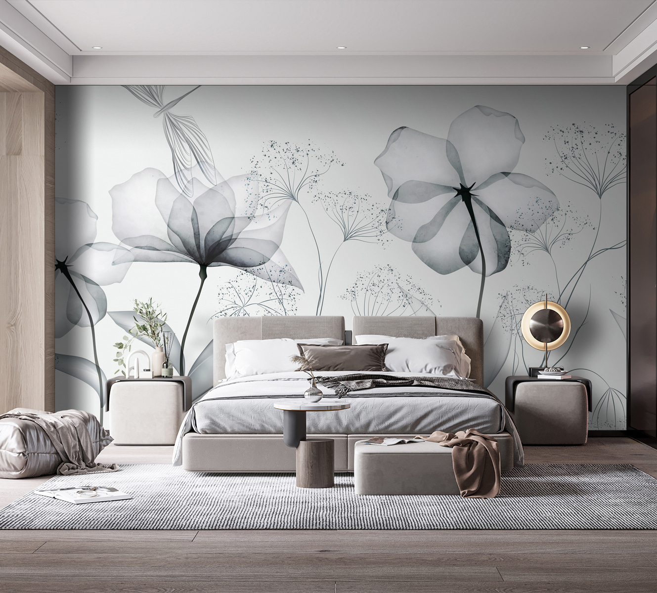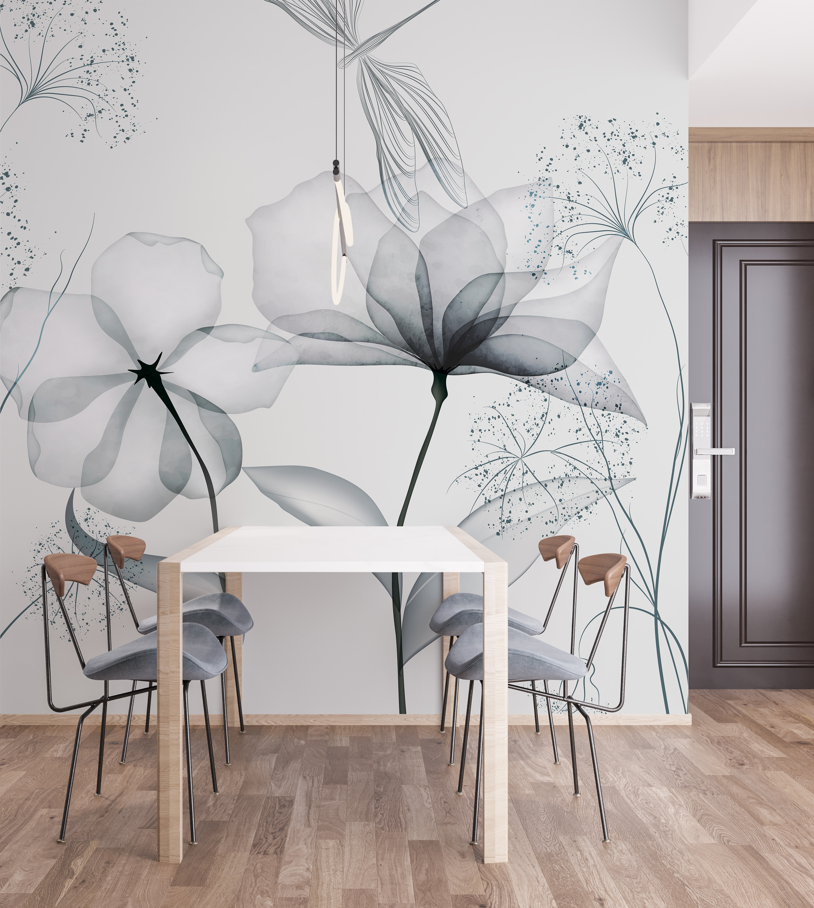Stellen Sie sich vor, Sie betreten einen Raum und werden von der schlichten Schönheit zarter, monochromer Blumen begrüßt. Diese Fototapete ist nicht nur Dekoration – sie ist eine Stimmung. Jede Blume, sanft gebürstet in weichen Grautönen, erinnert an ruhige Vormittage und friedliche Nachmittage. Perfekt für alle, die einen minimalistischen Touch lieben und sich nach einem Hauch von Natur sehnen. Es ist, als hätte man einen Aquarellgarten in seinem Wohnzimmer, nur ohne das Gießen! Ganz gleich, ob Sie in Ihrem Lieblingssessel träumen oder Freunde einladen, mit dieser Fototapete wird alles noch ein bisschen ruhiger. Ein kleines Stückchen Ruhe an Ihrer Wand. Wer würde das nicht lieben?