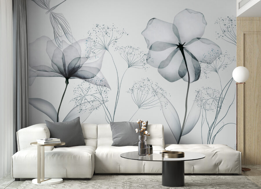 2 Rezensionen für Fototapeten Zarte Blumen in monochromem Design