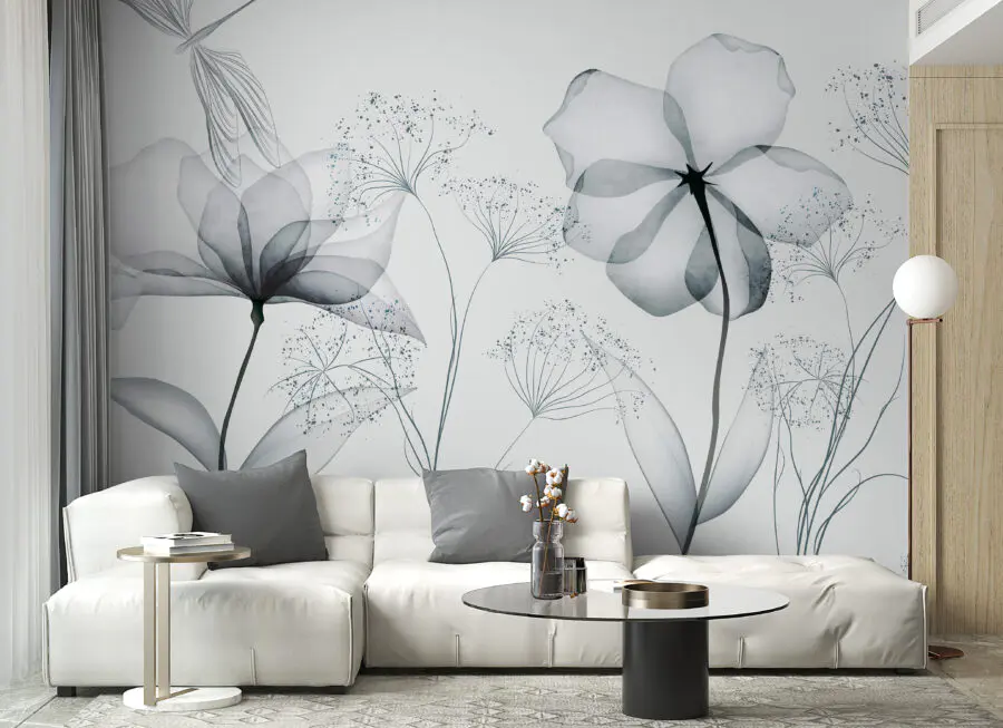 Stellen Sie sich vor, Sie betreten einen Raum und werden von der schlichten Schönheit zarter, monochromer Blumen begrüßt. Diese Fototapete ist nicht nur Dekoration – sie ist eine Stimmung. Jede Blume, sanft gebürstet in weichen Grautönen, erinnert an ruhige Vormittage und friedliche Nachmittage. Perfekt für alle, die einen minimalistischen Touch lieben und sich nach einem Hauch von Natur sehnen. Es ist, als hätte man einen Aquarellgarten in seinem Wohnzimmer, nur ohne das Gießen! Ganz gleich, ob Sie in Ihrem Lieblingssessel träumen oder Freunde einladen, mit dieser Fototapete wird alles noch ein bisschen ruhiger. Ein kleines Stückchen Ruhe an Ihrer Wand. Wer würde das nicht lieben?