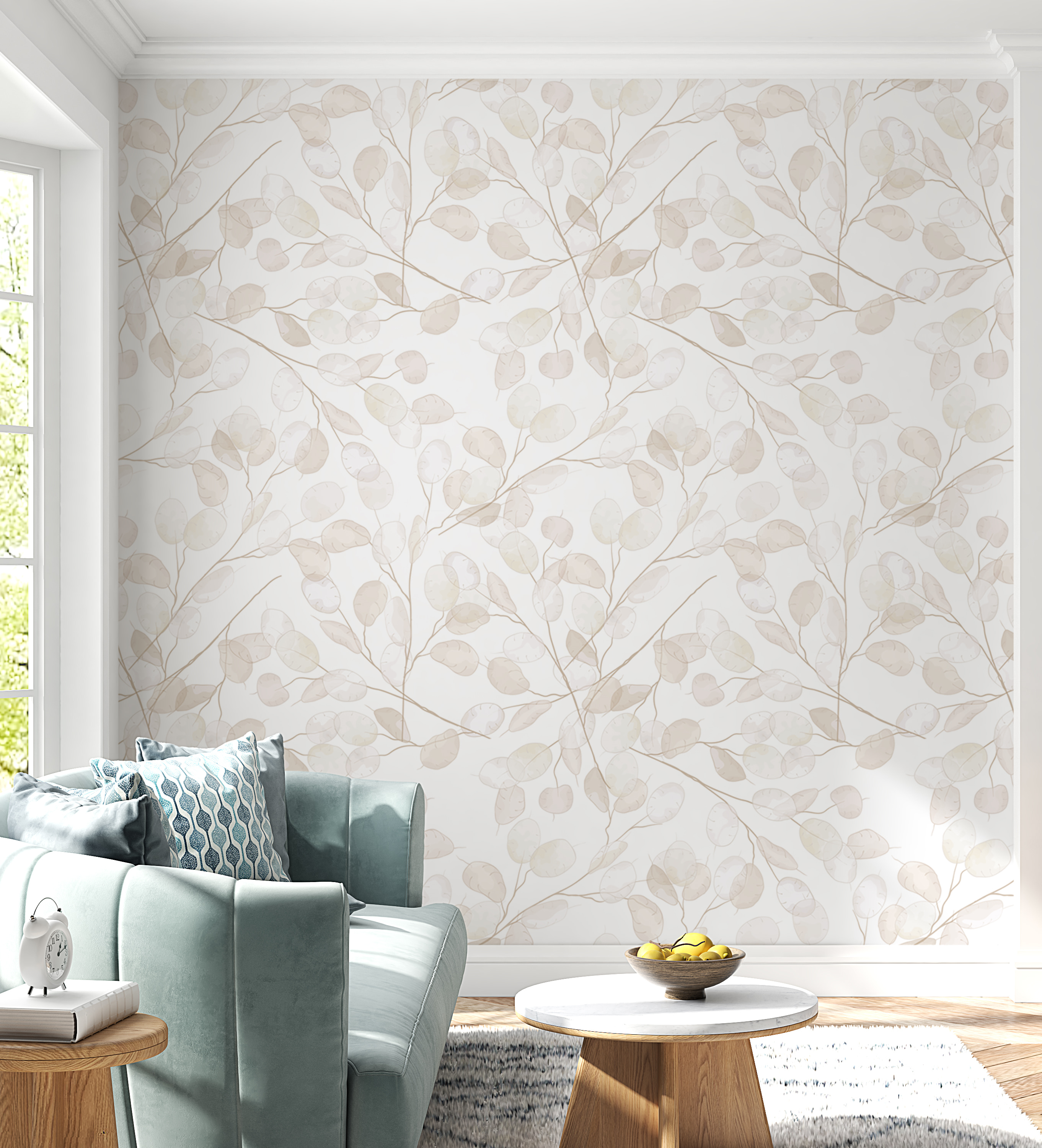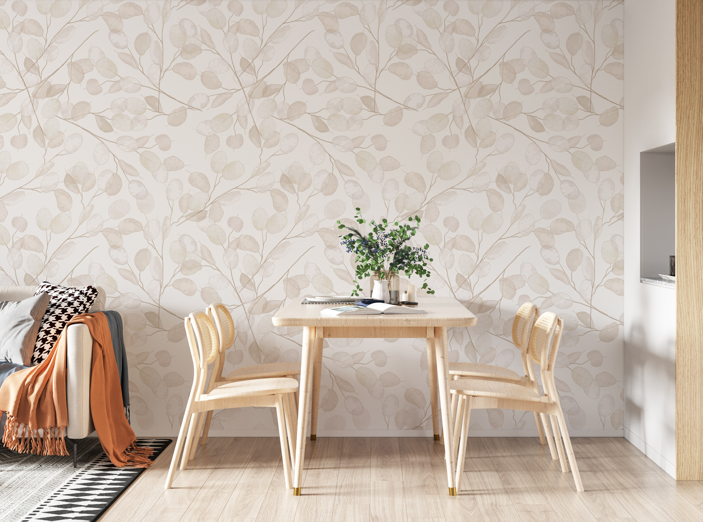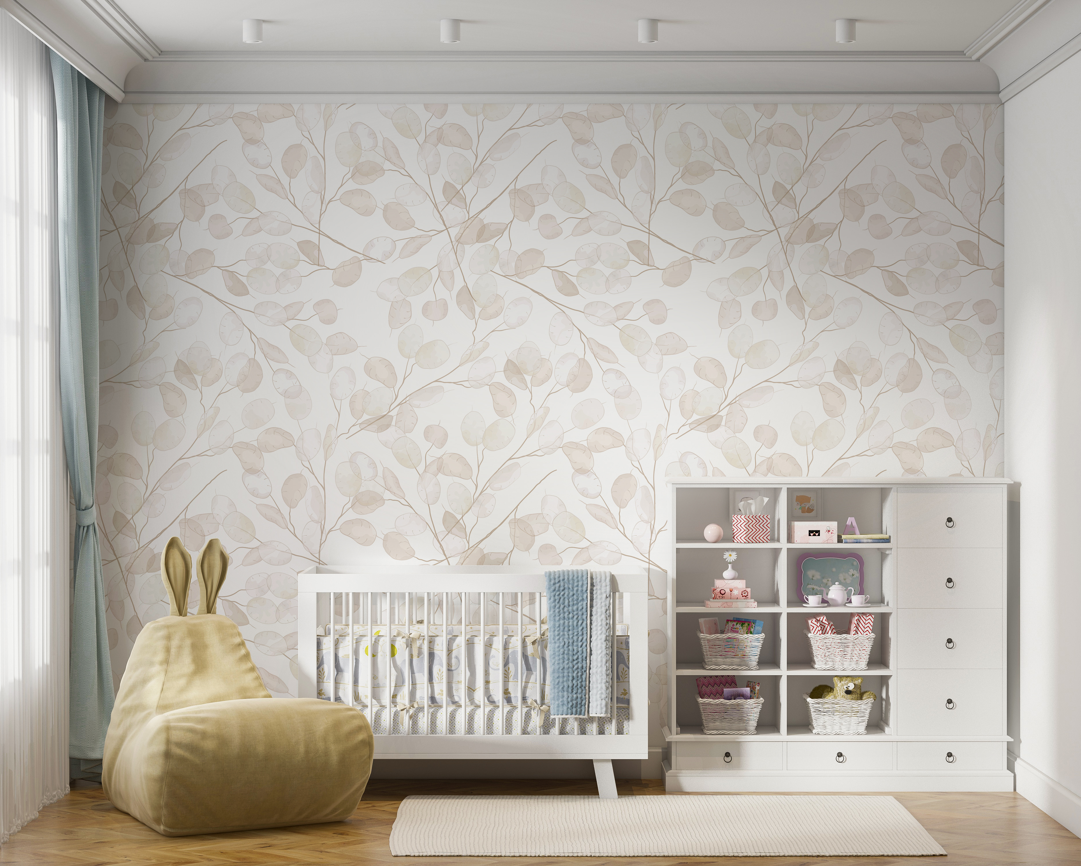 Verwandeln Sie jeden Raum mit dieser charmanten Fototapete mit sanften, subtilen Pflanzenmotiven. Es ist, als würde man die Natur ins Haus holen – perfekt für ein Kinderzimmer oder das Zimmer eines kleinen Mädchens. Stellen Sie sich vor: Ihr Kind blickt auf diese zarten Blätter und träumt von Abenteuern in verwunschenen Wäldern oder Schmetterlingstänzen. Die sanften Farben schaffen eine heitere Atmosphäre und machen es zu einem gemütlichen Rückzugsort nach einem Tag voller Lachen und Spielen. Es ist nicht nur Dekoration, es ist eine Leinwand für die Fantasie! Dieses Wandbild lädt zu Geschichten, Kichern und süßen Träumen ein und macht jeden Moment in diesem Zimmer zu etwas ganz Besonderem. Stellen Sie sich das Lächeln vor!