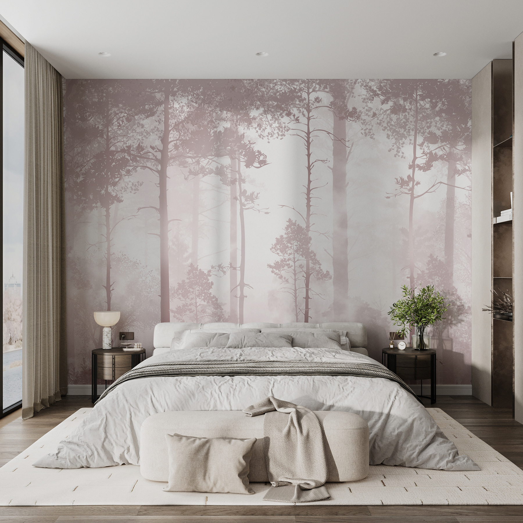 Der Nebel, der sich durch die hohen, anmutigen Bäume schlängelt, hat eine fast magische Qualität. Perfekt, um einen friedlichen Zufluchtsort in Ihrem Zuhause zu schaffen. Stellen Sie sich vor, Sie machen es sich mit einem guten Buch gemütlich oder meditieren davor – und kommen sofort zur Ruhe. Die subtilen Farbtöne und der verträumte Nebel verleihen Ihrem Raum ein großzügiges, aber dennoch intimes Gefühl, als befänden Sie sich in Ihrem eigenen privaten Wald. Ein Muss für Naturliebhaber oder alle, die ihrem Raum einen Hauch von Laune und Ruhe verleihen möchten. 🍃✨