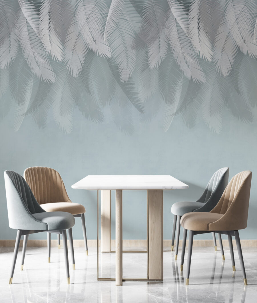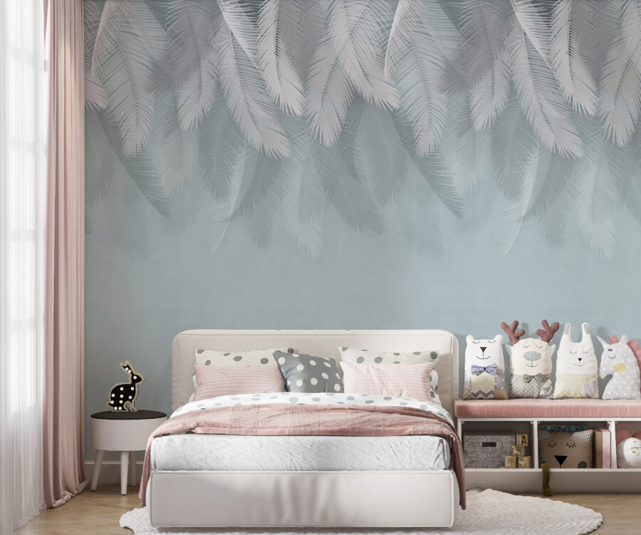 Stellen Sie sich vor, Sie betreten einen gemütlichen Raum und werden von sanften weißen Federn begrüßt, die vor einem zarten blauen Hintergrund schweben. Diese Wandtapete ist nicht nur eine Dekoration, sondern ein kleines Stückchen Gelassenheit, das Ihren Raum in eine ruhige Atmosphäre hüllt. Sie eignet sich perfekt für ein Schlafzimmer oder eine Leseecke und fühlt sich an wie eine sanfte Brise an einem warmen Tag. Das verspielte Design flüstert von Tagträumen und Abenteuern, vielleicht sogar von einer Fahrt mit dem Heißluftballon durch Zuckerwattewolken. Es ist die Art von Kunst, die Sie dazu einlädt, zu verweilen, tief durchzuatmen und für einen Moment dem Trubel zu entfliehen. Lassen Sie jeden Blick ein Lächeln hervorrufen!